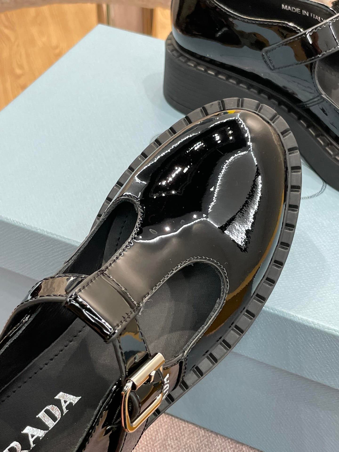 Prada Brushed Leather Mary Jane T Strap Shoes Black 2Ee372 055 F0002