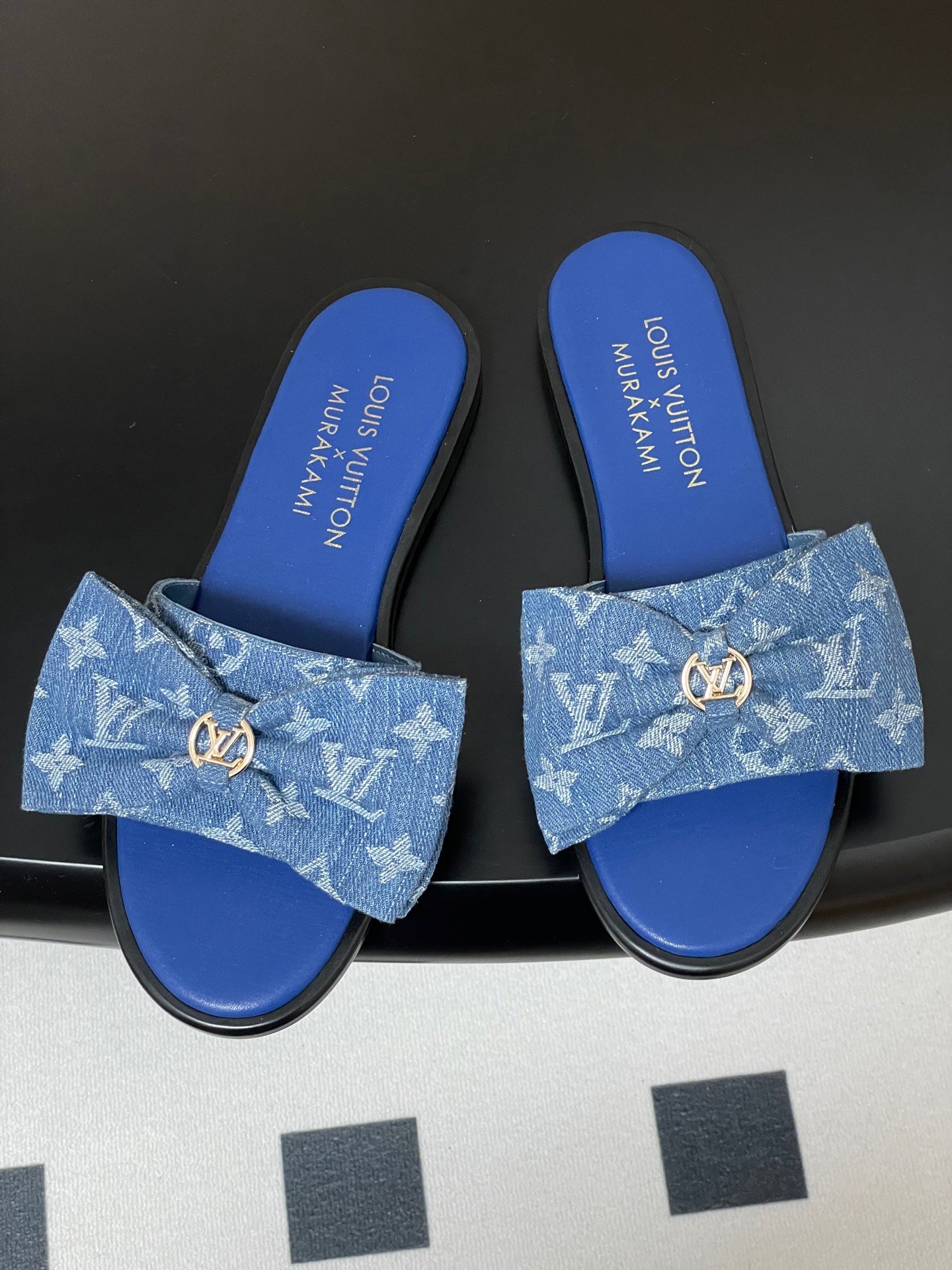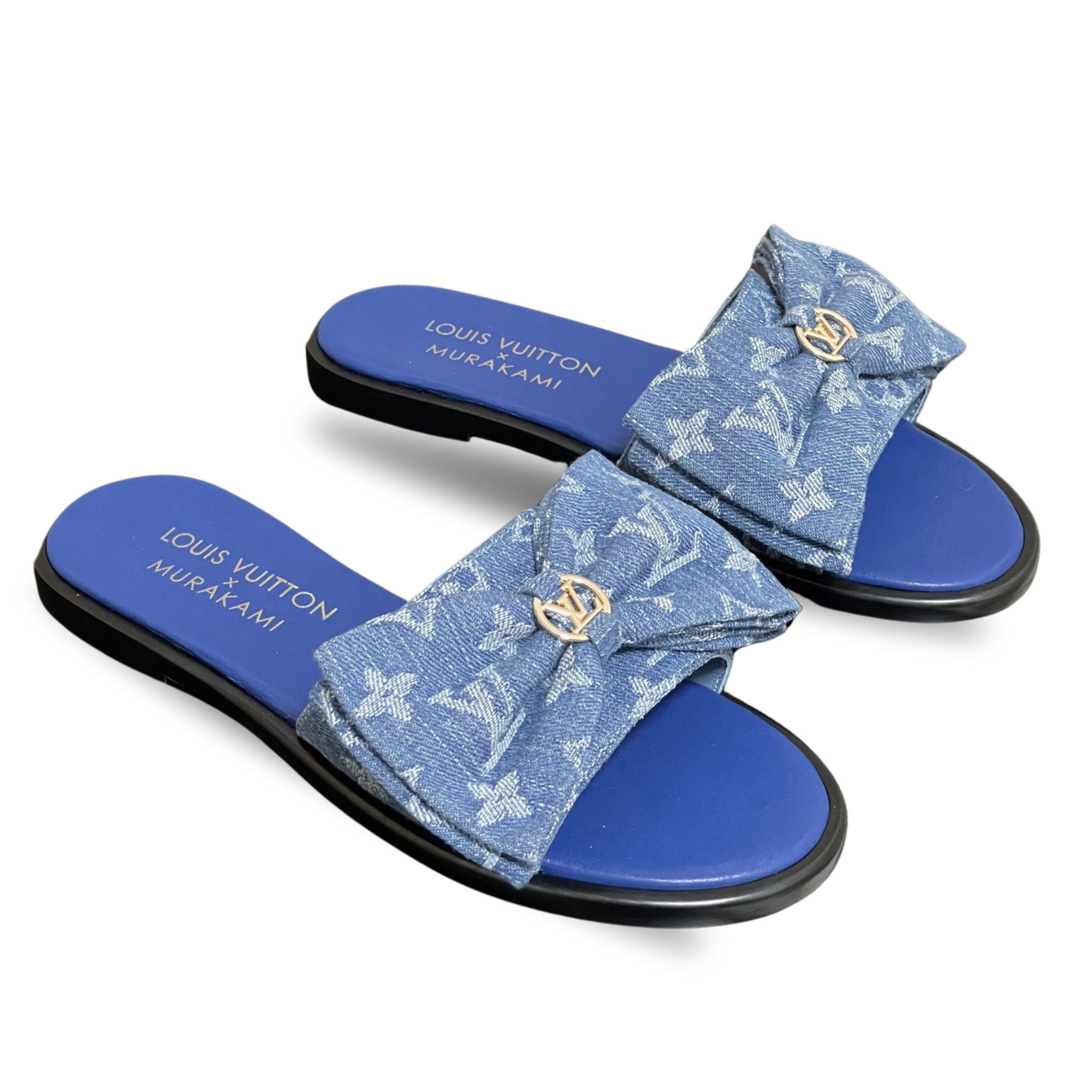 Louis Vuitton x Takashi Murakami Lily Flat Mule Bow Slide Sandals Blue Canvas 1AGVYA