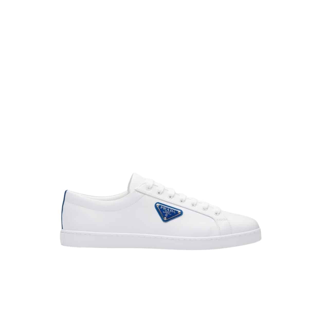 Prada Brushed Sneakers Leather White White Cobalt Blue