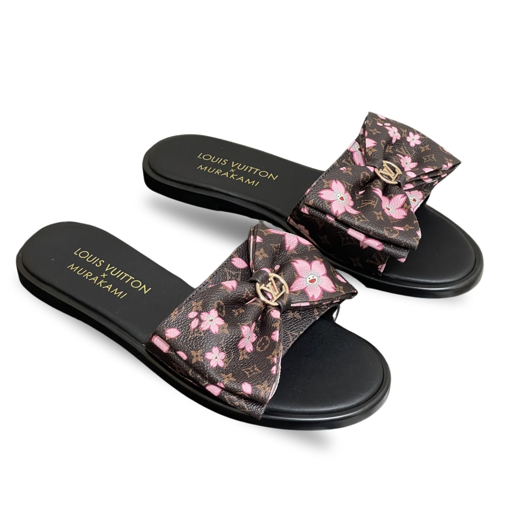 Louis Vuitton x Takashi Murakami Cherry Blossom Flat Slide Black Monogram with Bow
