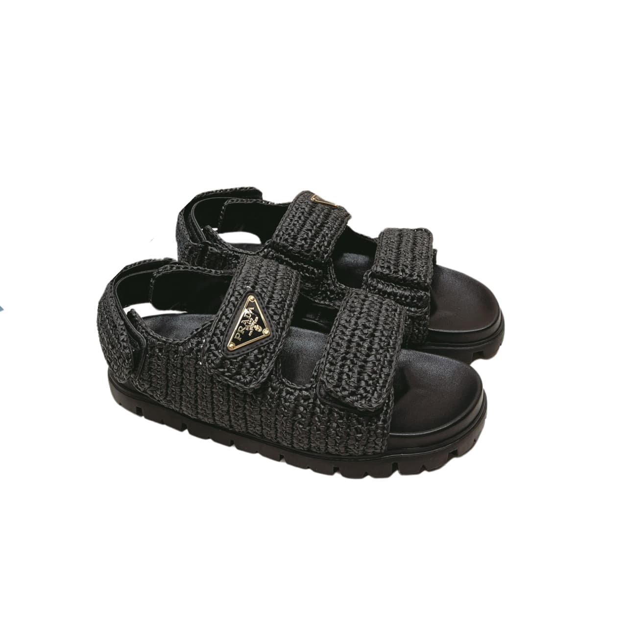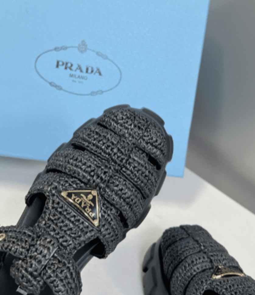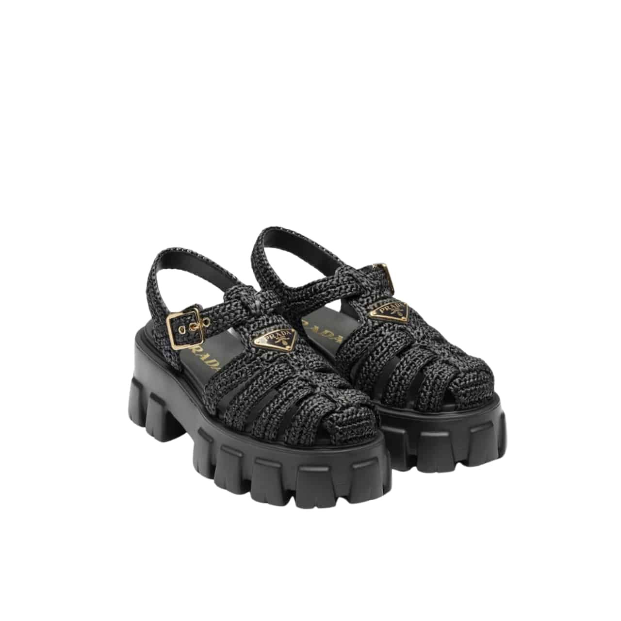 Prada Monolith Crochet Raffia Effect Sandals In Black