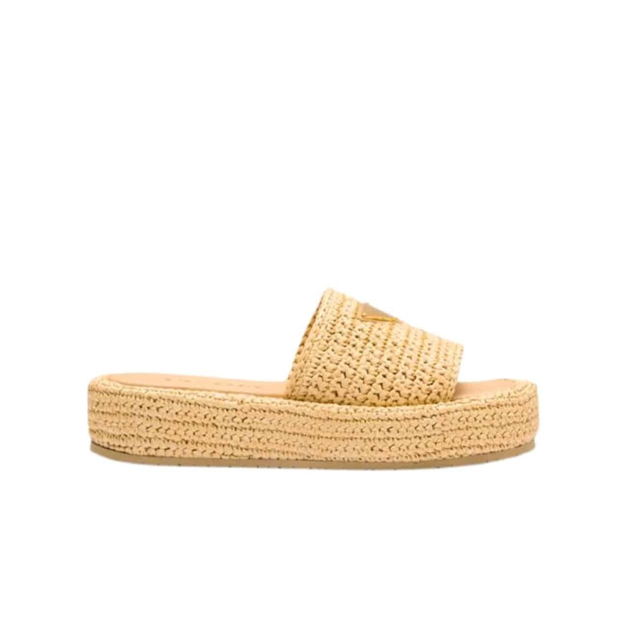 Prada Monolith Crochet Raffia Effect Sandals In Neutrals