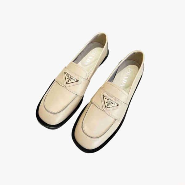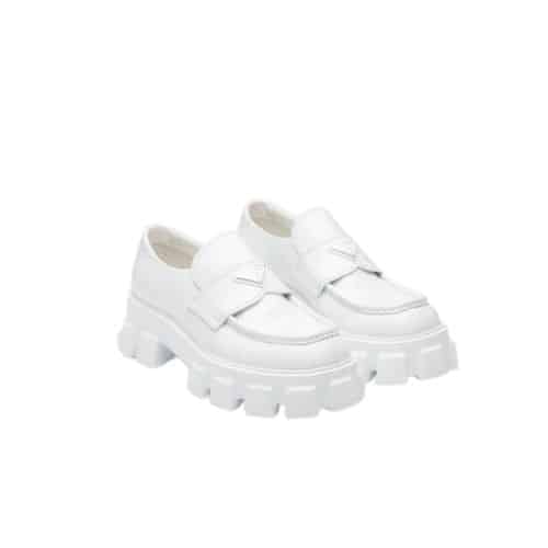 Prada Monolith Brushed White Leather Loafers 2De129B4Lf0009