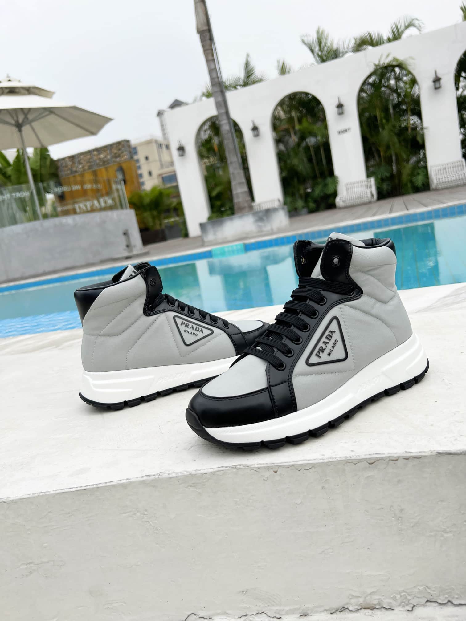 Prada Prax 01 Re Nylon And Brushed Leather Sneakers Grey