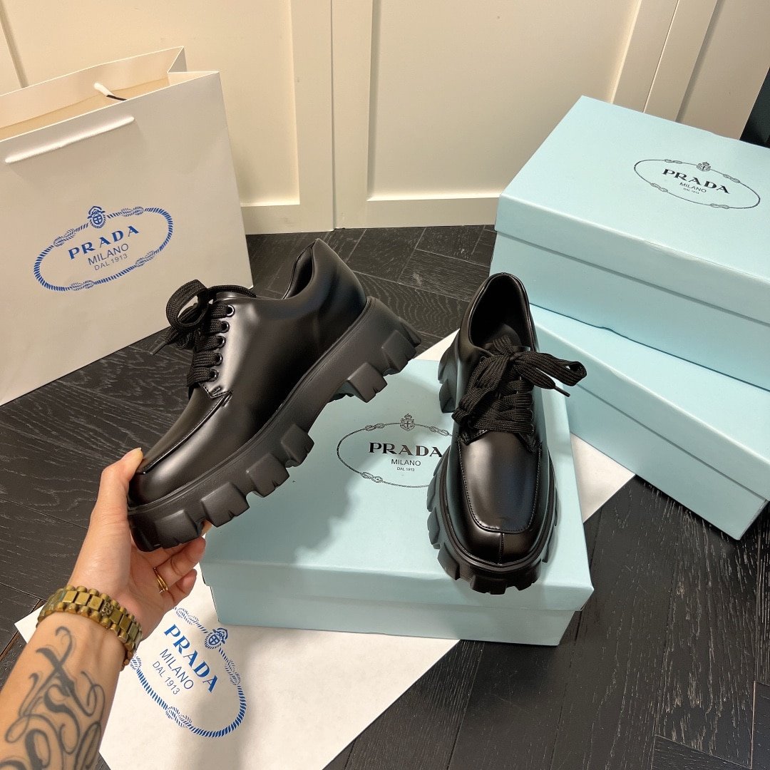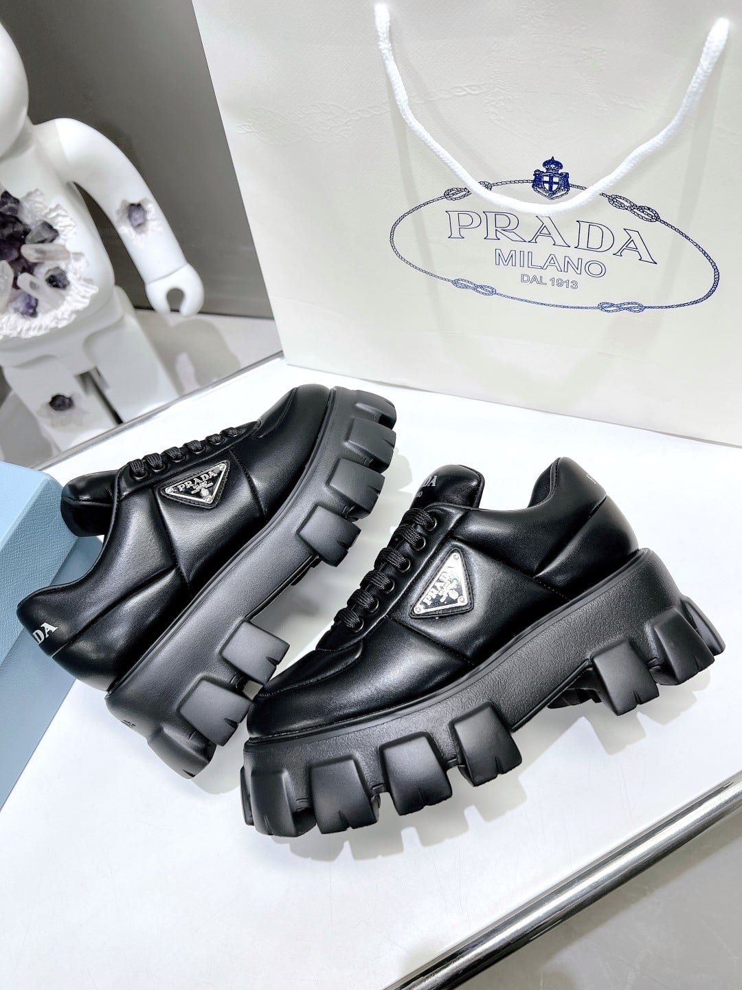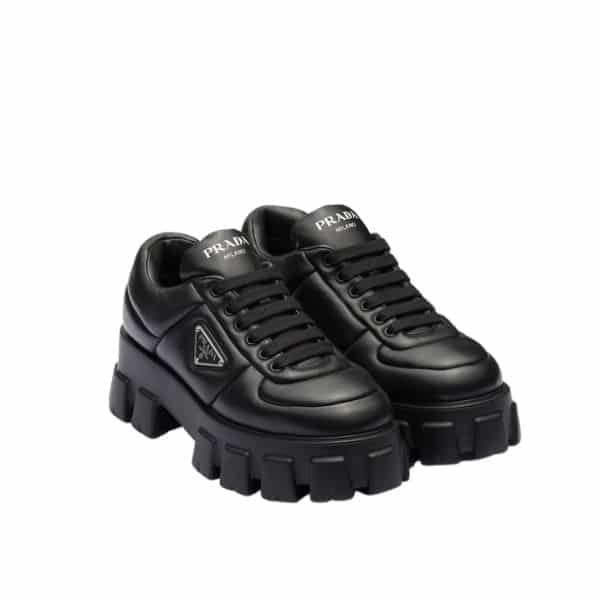 Prada Soft Padded Nappa Leather Lace Up Shoes Black 1E119N 2Dl8 F0002 F 055