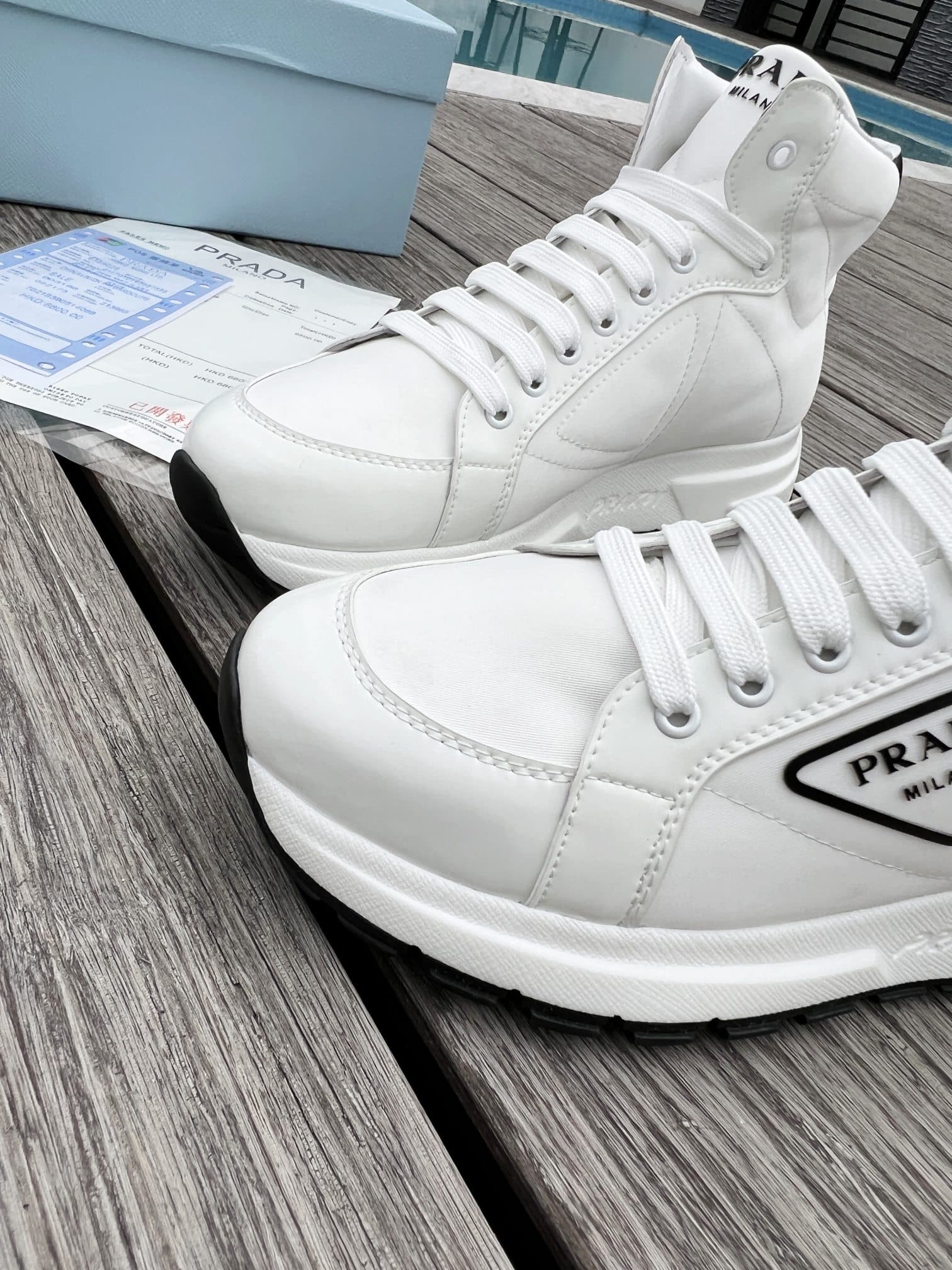 Prada Prax 01 Re Nylon And Brushed Leather Sneakers White