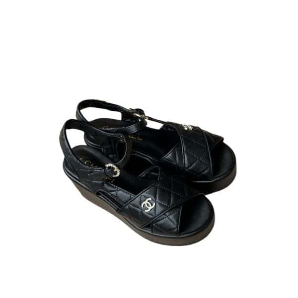 Chanel Sandal Pump Stone Beads Black Silver G45365 B15306 Nu665