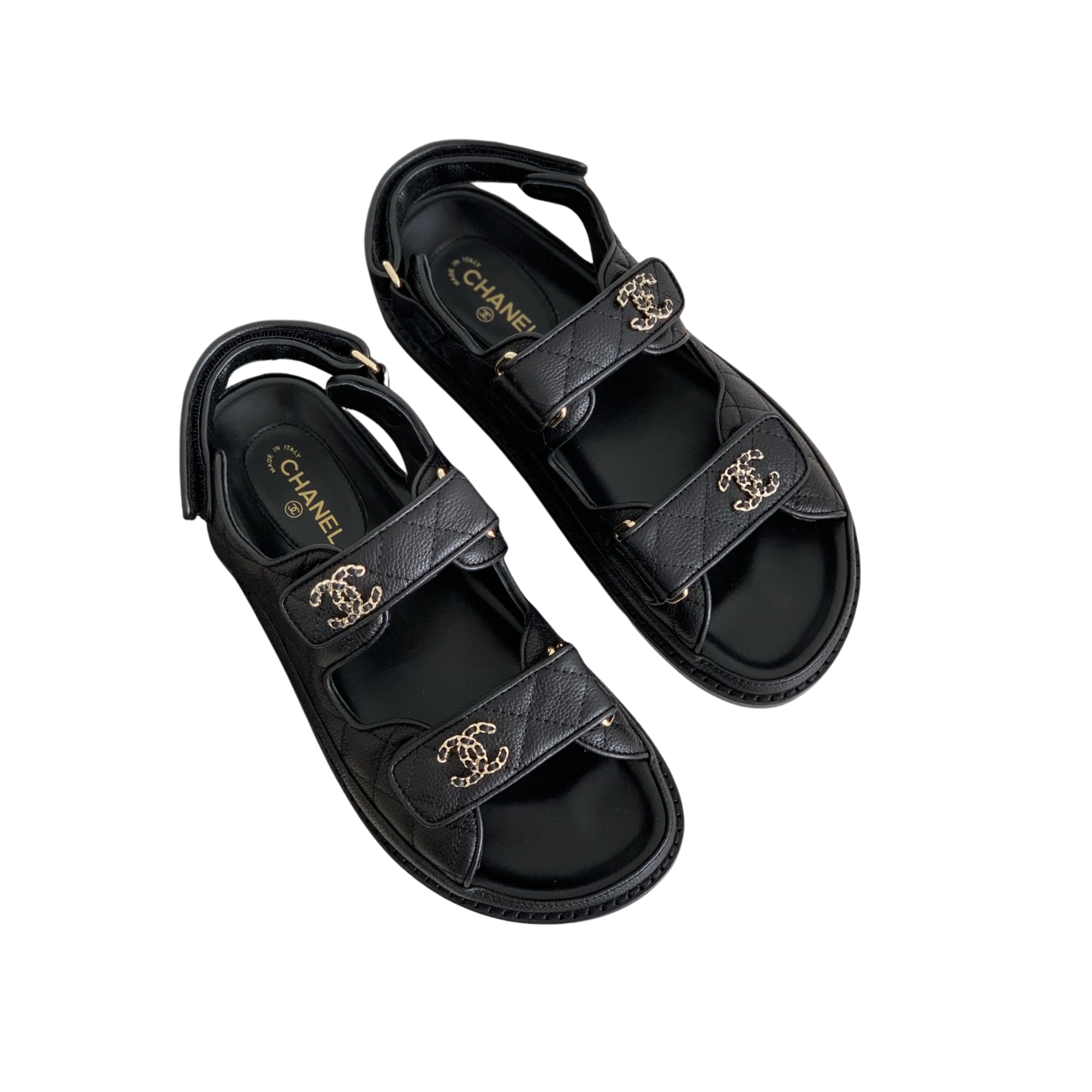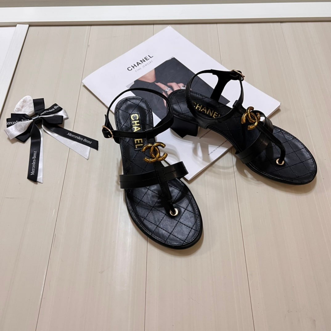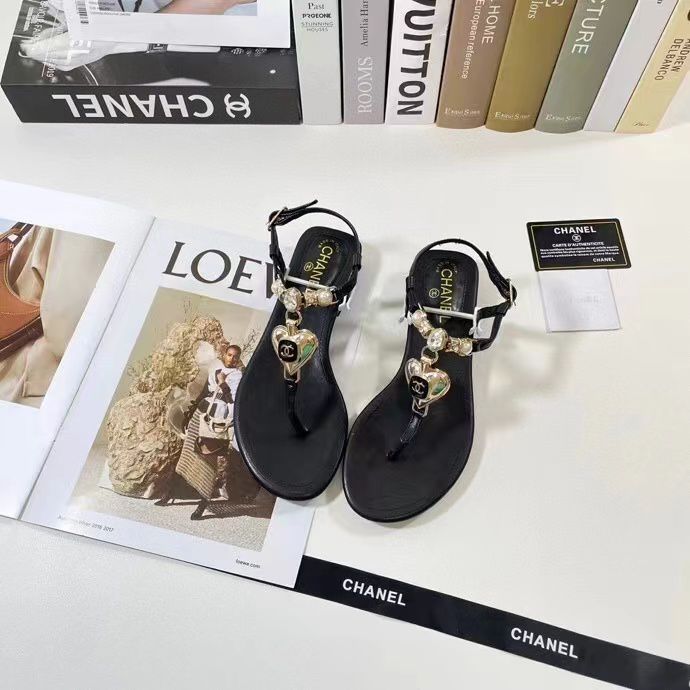 Chanel Shiny Pearl Crystal Cc Heart Thong Sandals Black G39674 X01000 94305