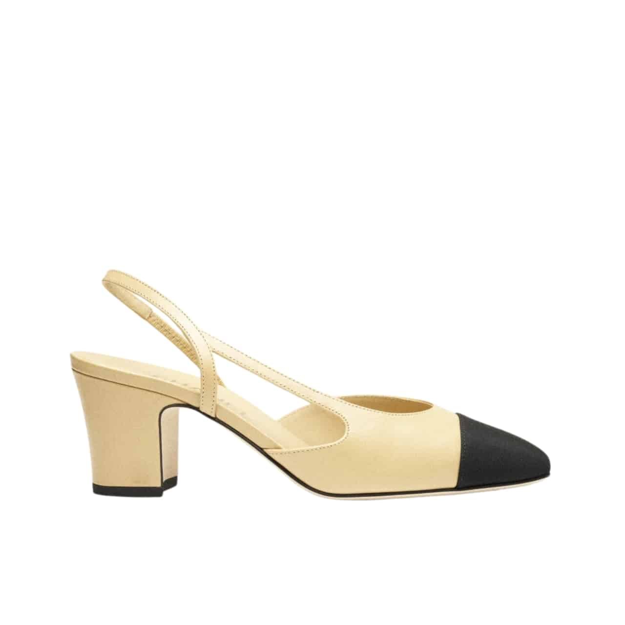 Chanel Slingbacks Goatskin &Amp Grosgrain Beige &Amp Black G31318 Y50006 C8378
