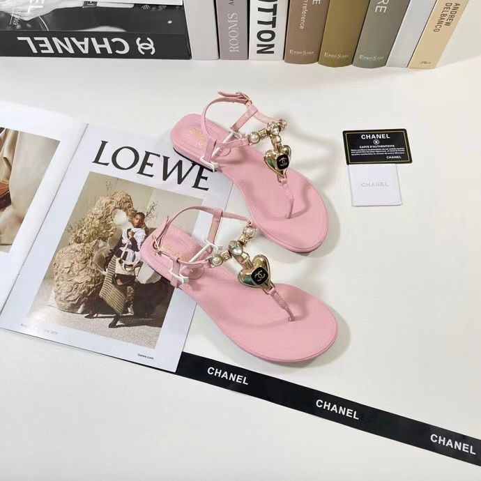 Chanel Shiny Pearl Crystal Cc Heart Thong Sandals Pink