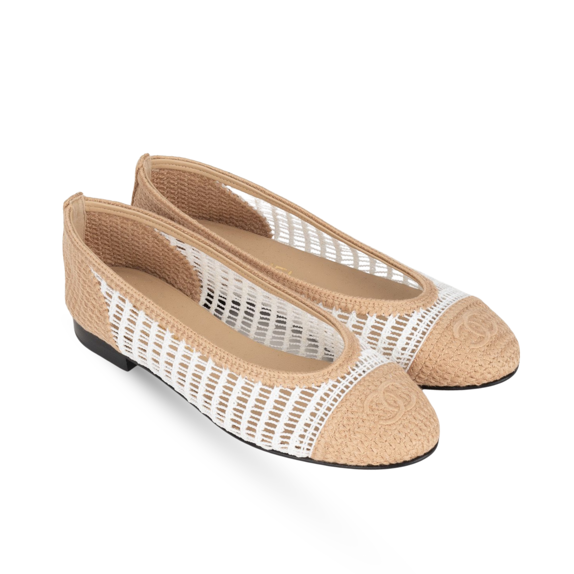 Chanel Raffia & Leather Two-Tone Beige/White Ballet Flats G45056