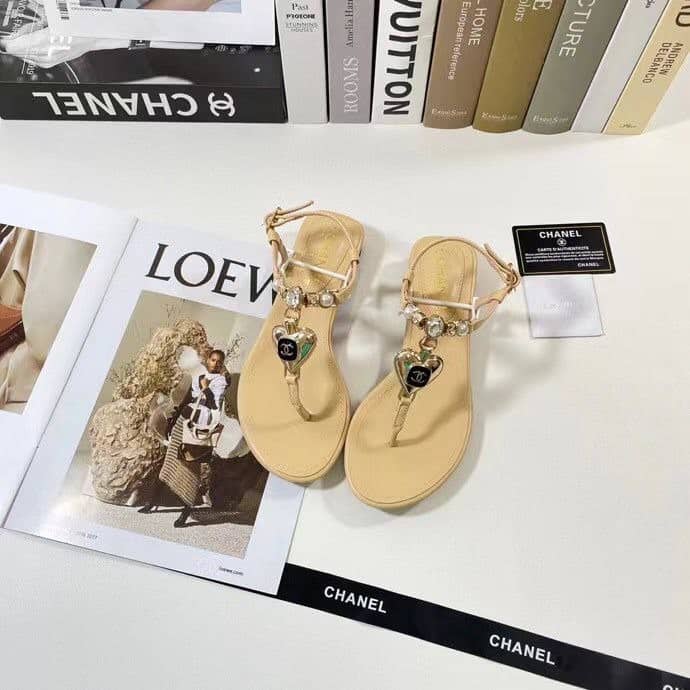 Chanel Shiny Pearl Crystal Cc Heart Thong Sandals White G39674 X01000 0S082
