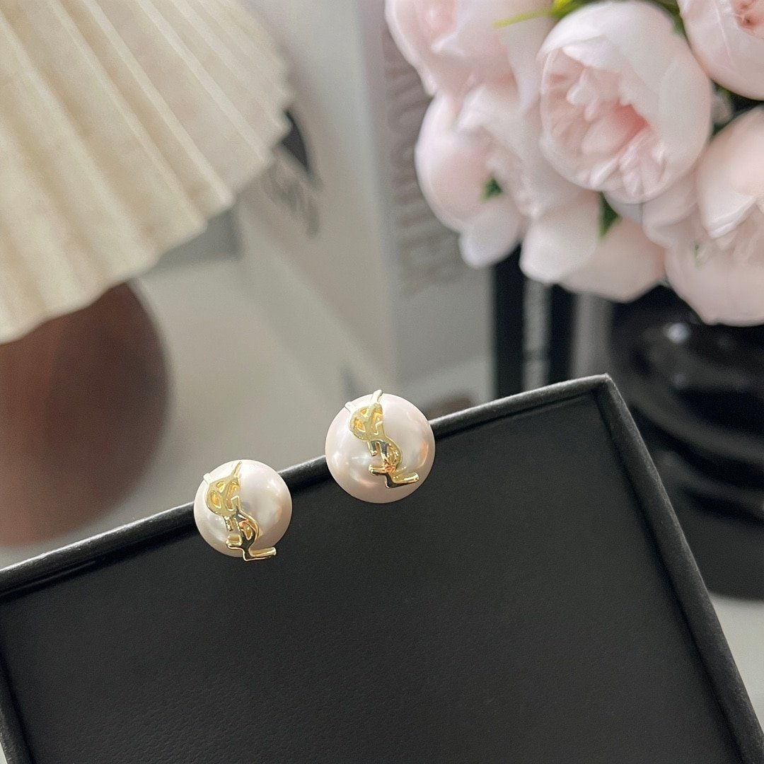 Saint Laurent Cassandre Pearl Earrings In Metal 691563Y15269018