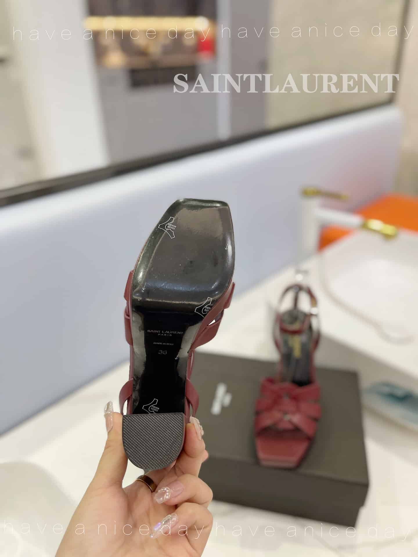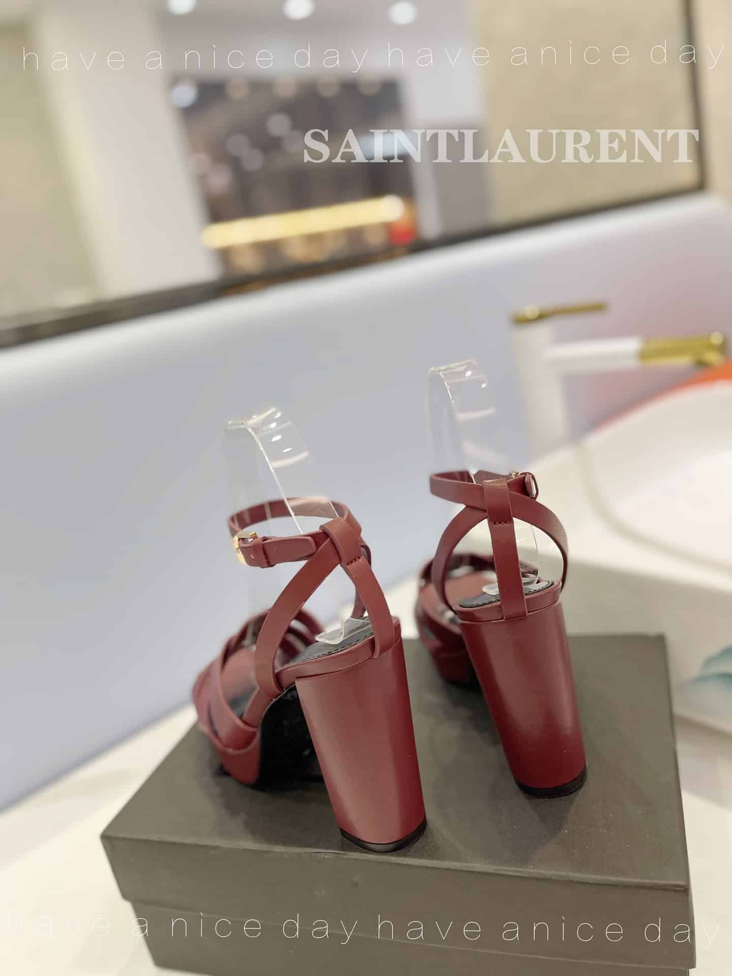 Saint Laurent Tribute Platform Sandals In Smooth Leather Burgundy