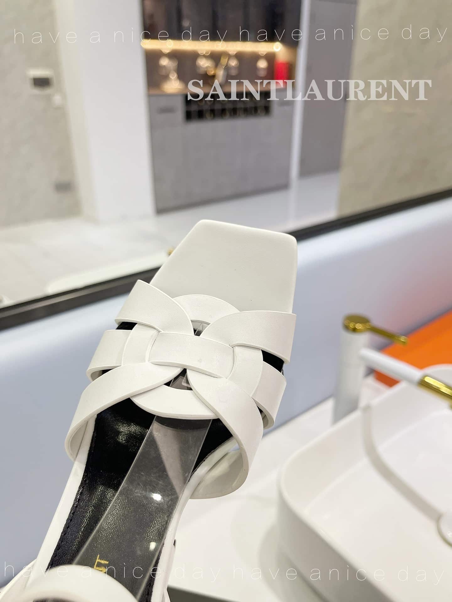 Saint Laurent Tribute Platform Sandals In Smooth Leather White