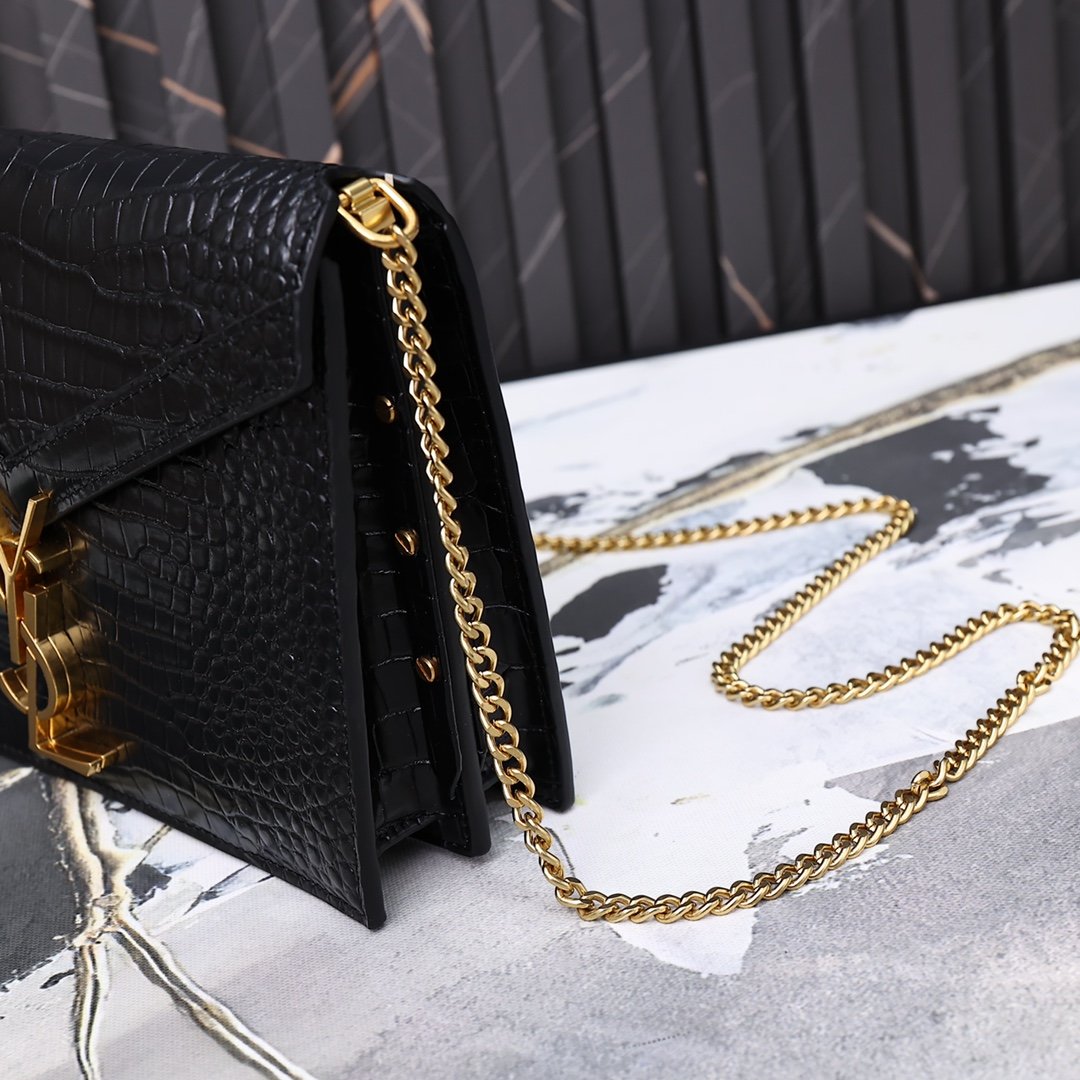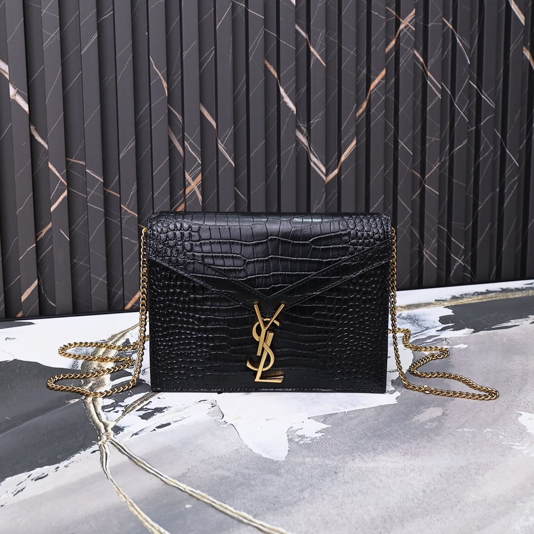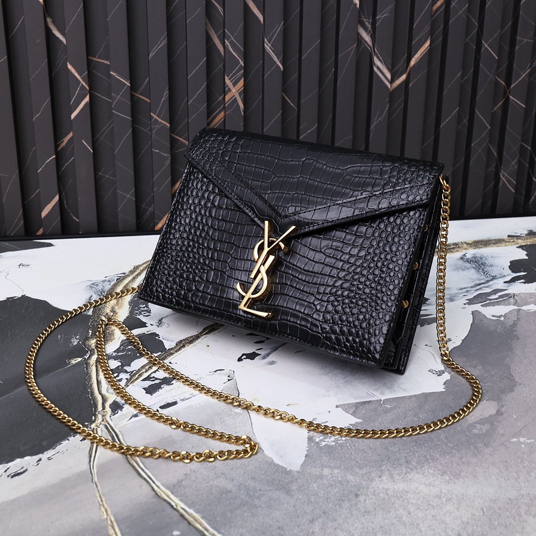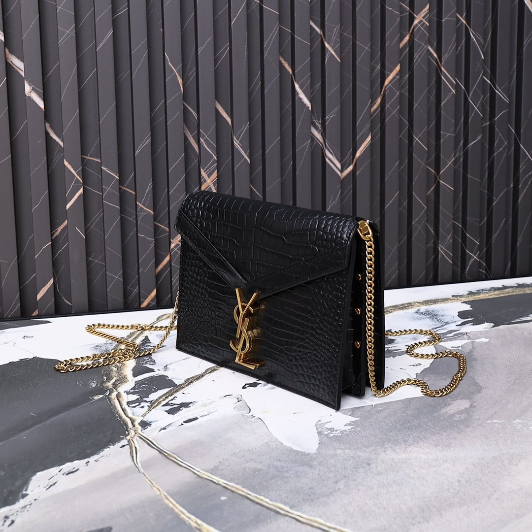 Saint Laurent Cassandra Shiny Leather Cross-Body Bag Black