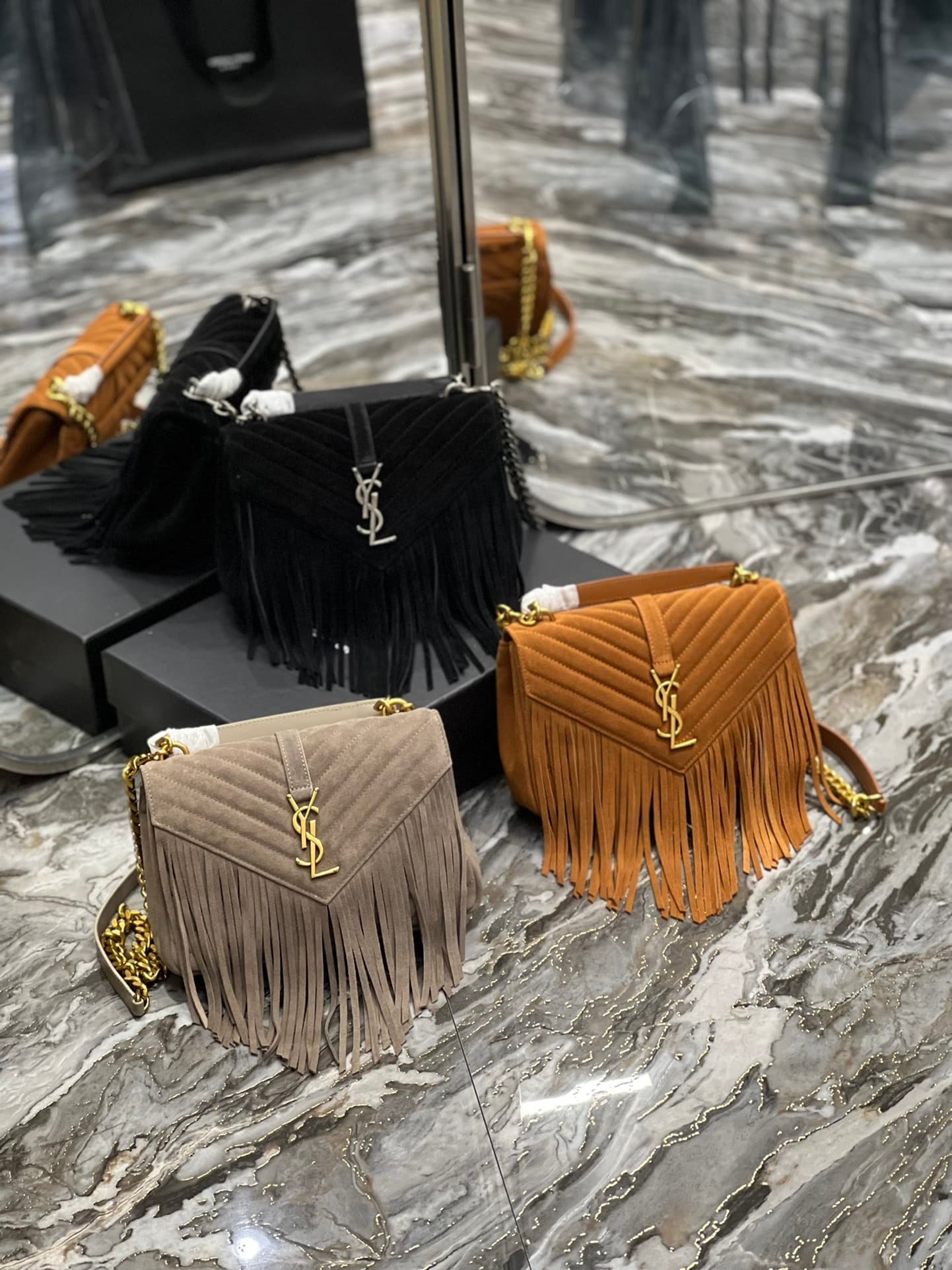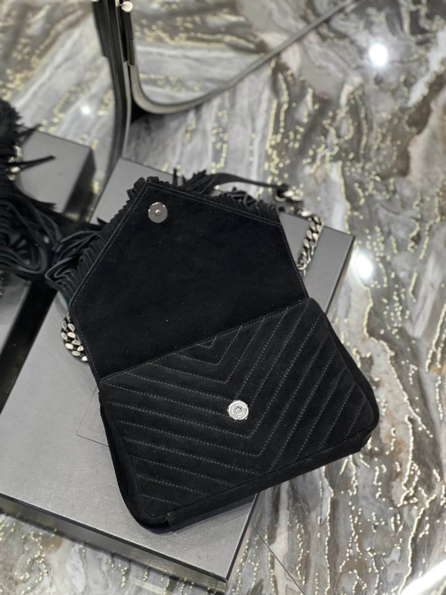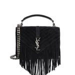 Saint Laurent College Medium Suede Shoulder Bag Black 24Cm