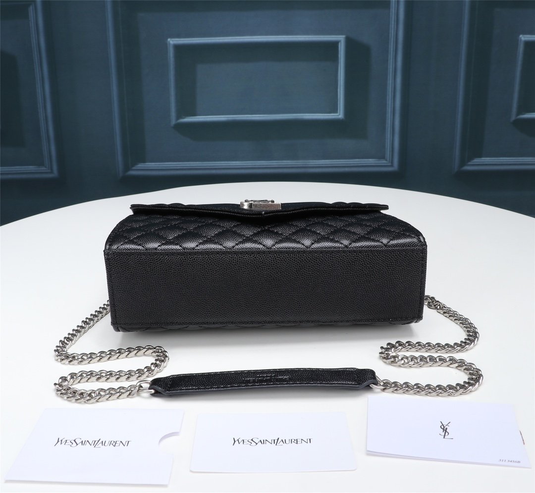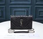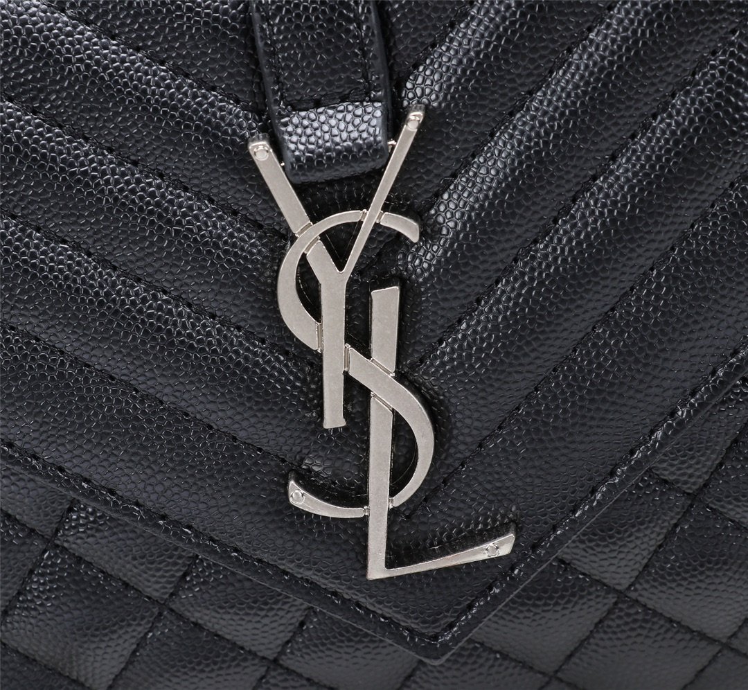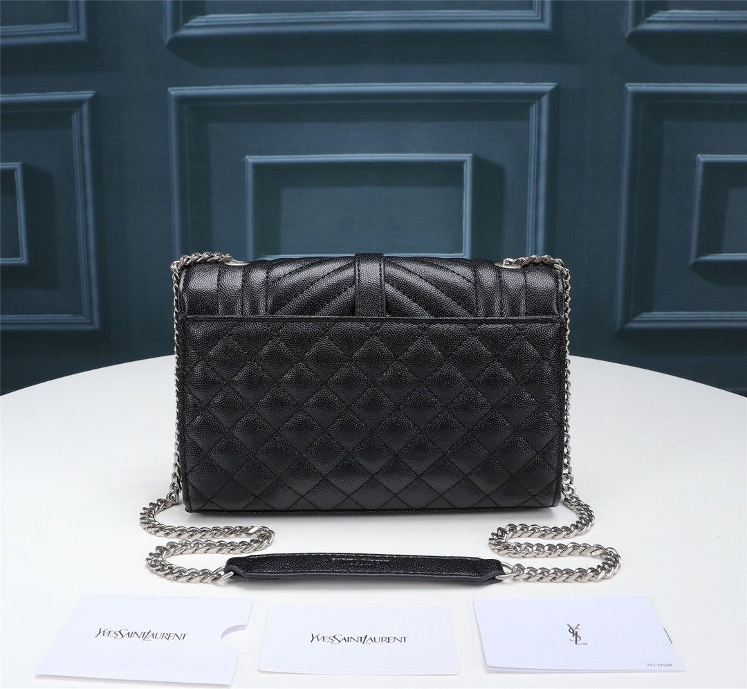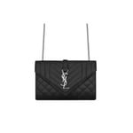 • Saint Laurent Envelope Small Bag In Mix Matelasse Grain De Poudre Embossed Black Silver
