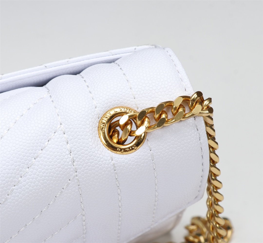 • Saint Laurent Envelope Small Bag In Mix Matelasse Grain De Poudre Embossed White