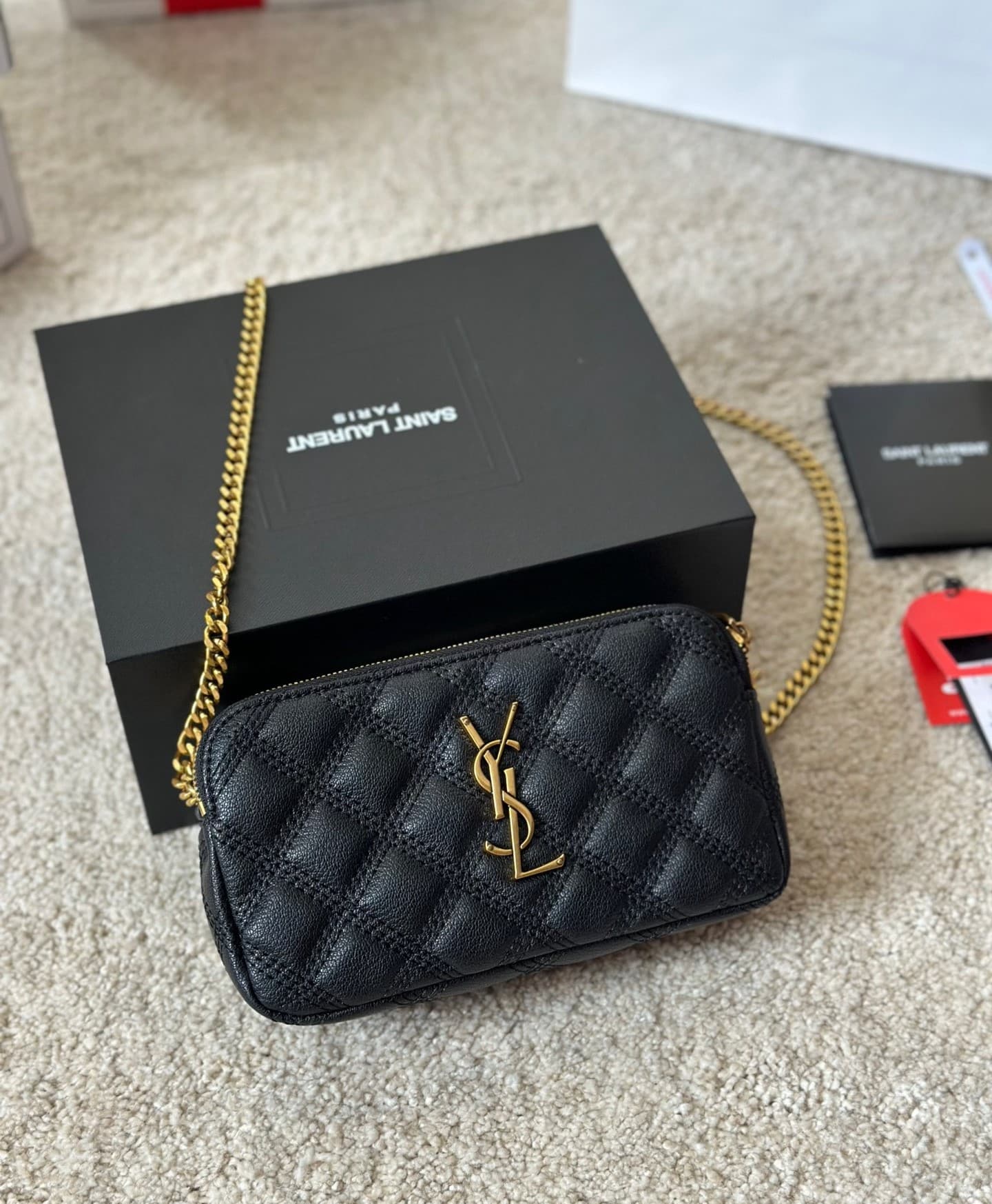 Saint Laurent Becky Quilted Double Zip Pouch Bag Black 20Cm