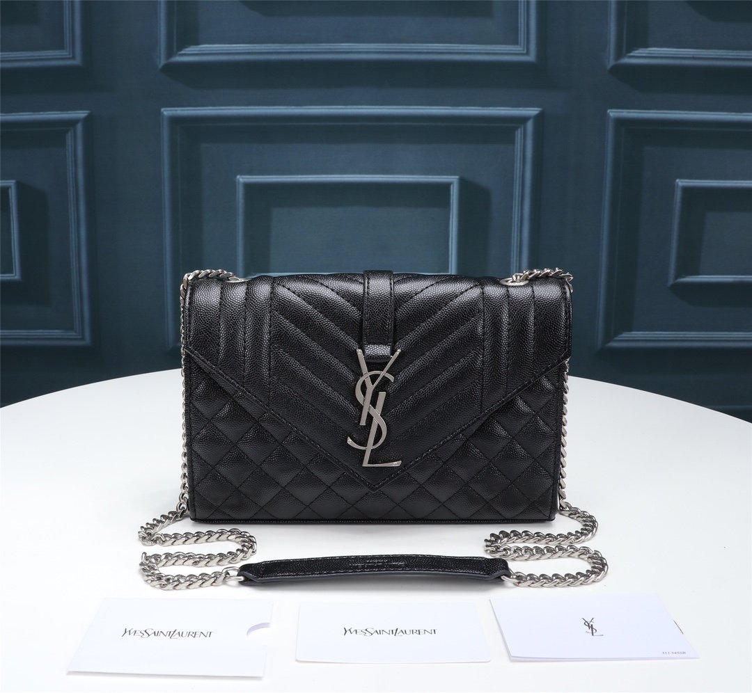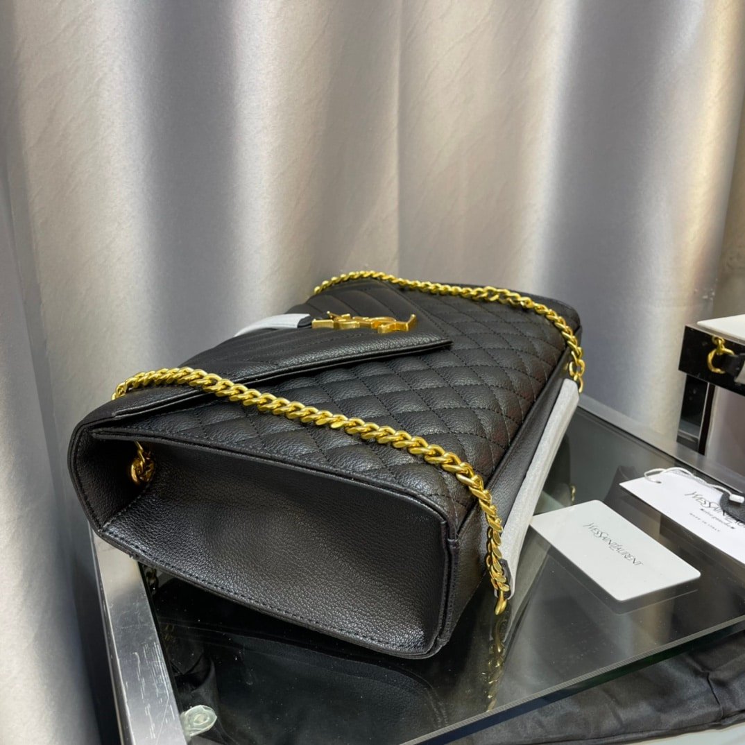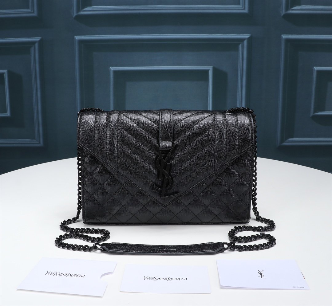 Saint Laurent Envelope Large Bag In Mix Matelasse Grain De Poudre Embossed Leather Black 31Cm