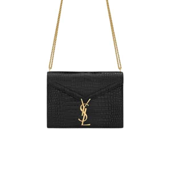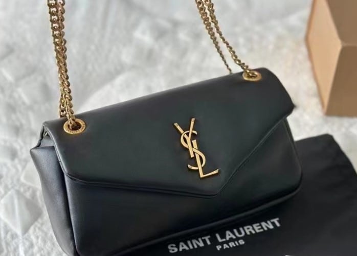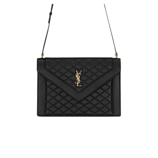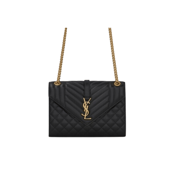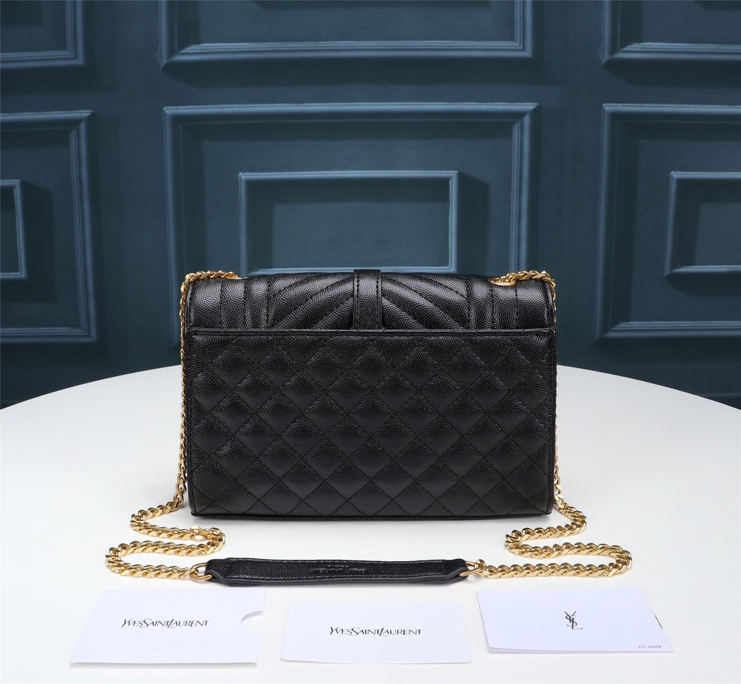 Saint Laurent Envelope Medium Chain Bag In Supple Matelasse Leather Black Gold 24Cm