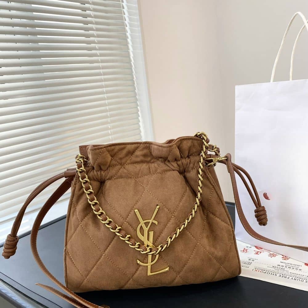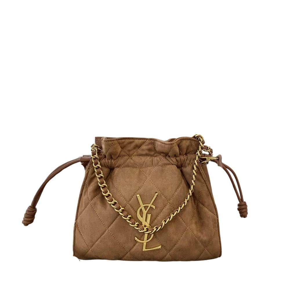 Saint Laurent Bucket Bag Quilted Suede Brown 29Cm
