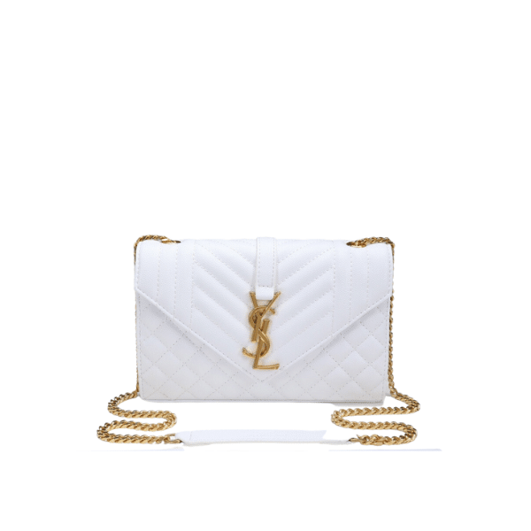 Saint Laurent Envelope Small Bag In Mix Matelasse Grain De Poudre Embossed White