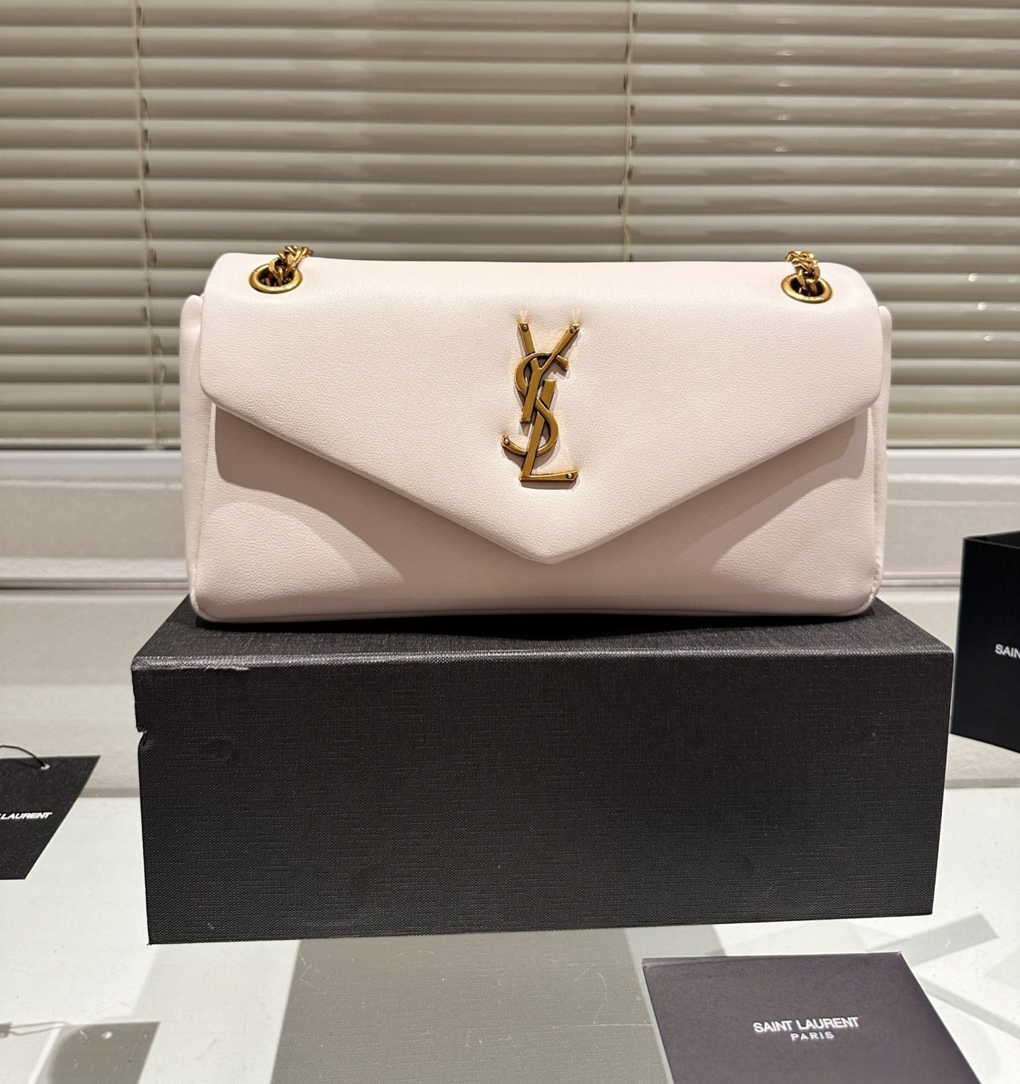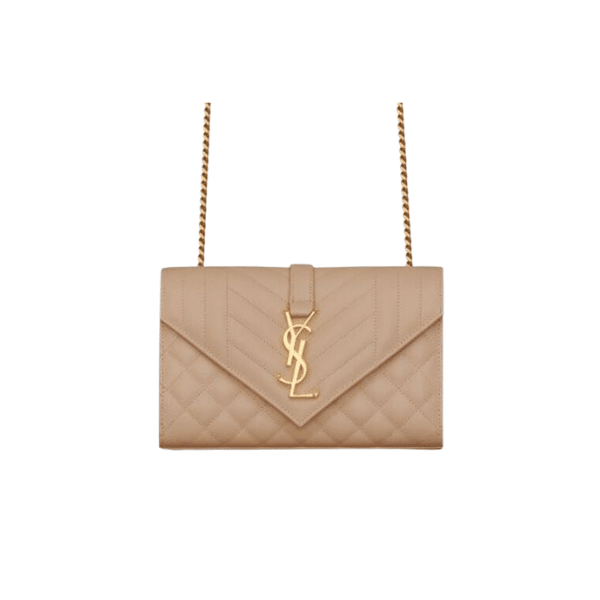 Saint Laurent Envelope Medium Chain Bag In Mix Matelasse Grain De Poudre Embossed Beige 24Cm