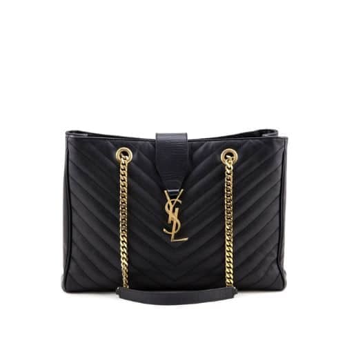 Saint Laurent Black Grain De Poudre Matelasse Chevron Monogram Shopping Bag Gold Hardware