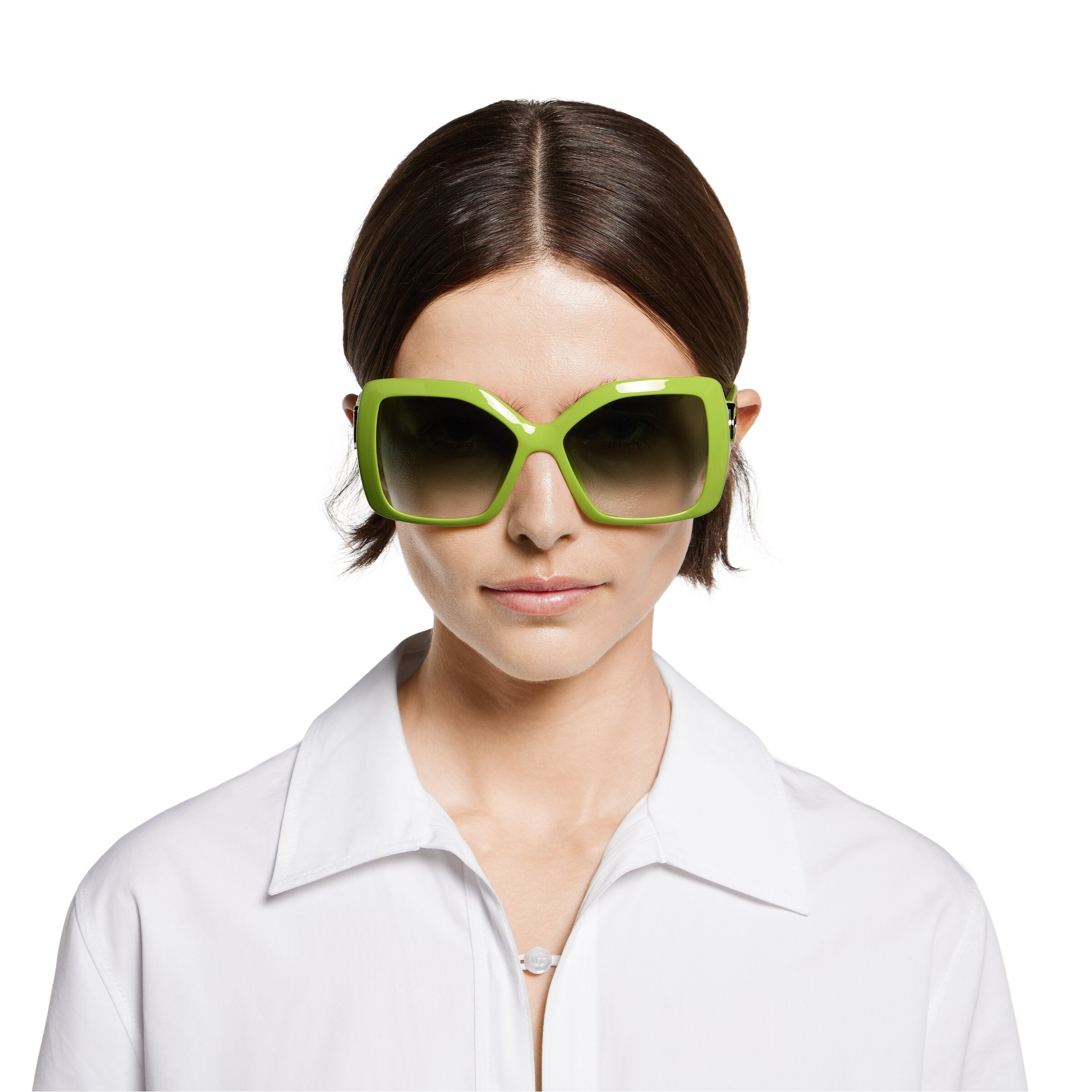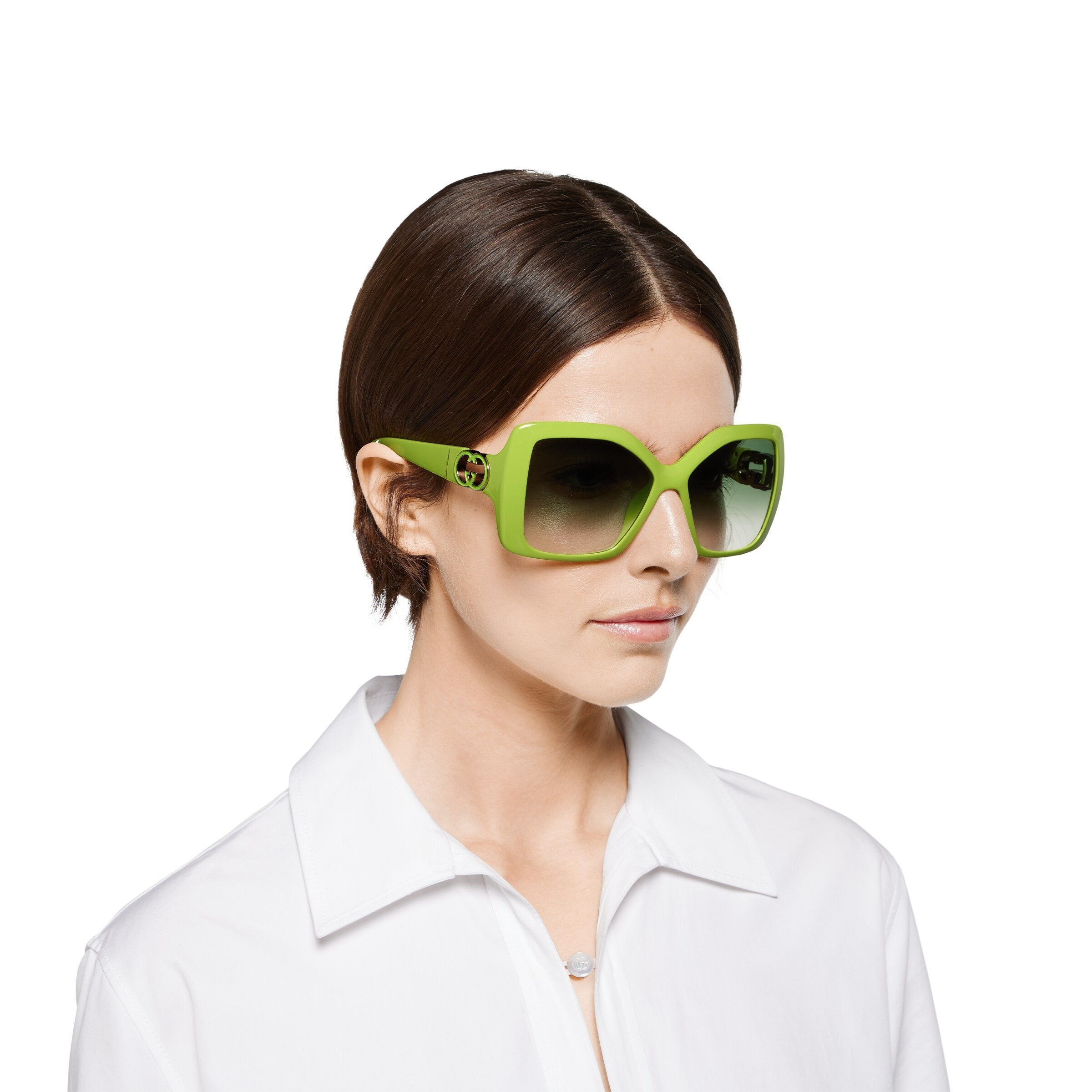 – Acid green injection temples with black enameled cut-out Interlocking G logo