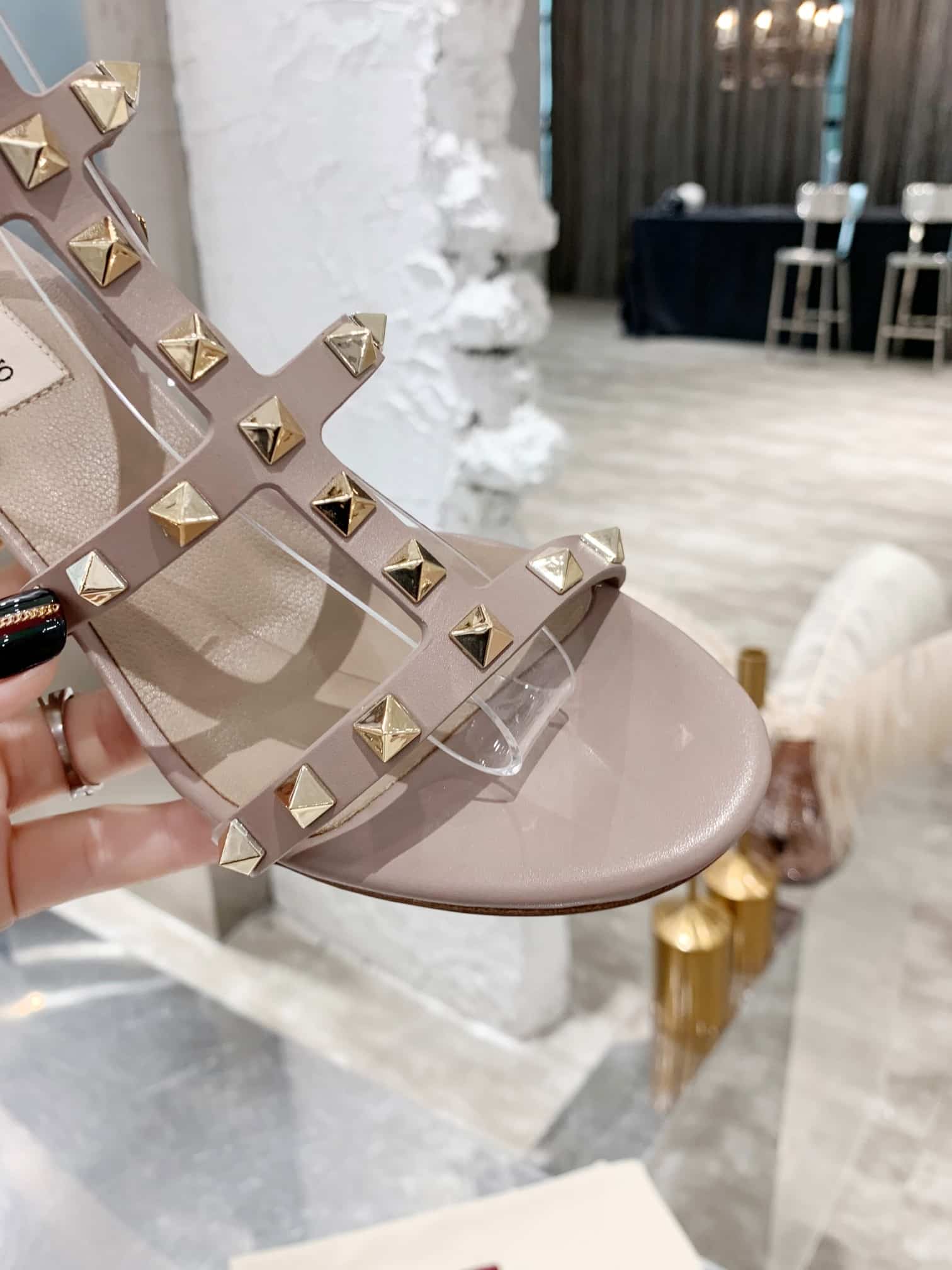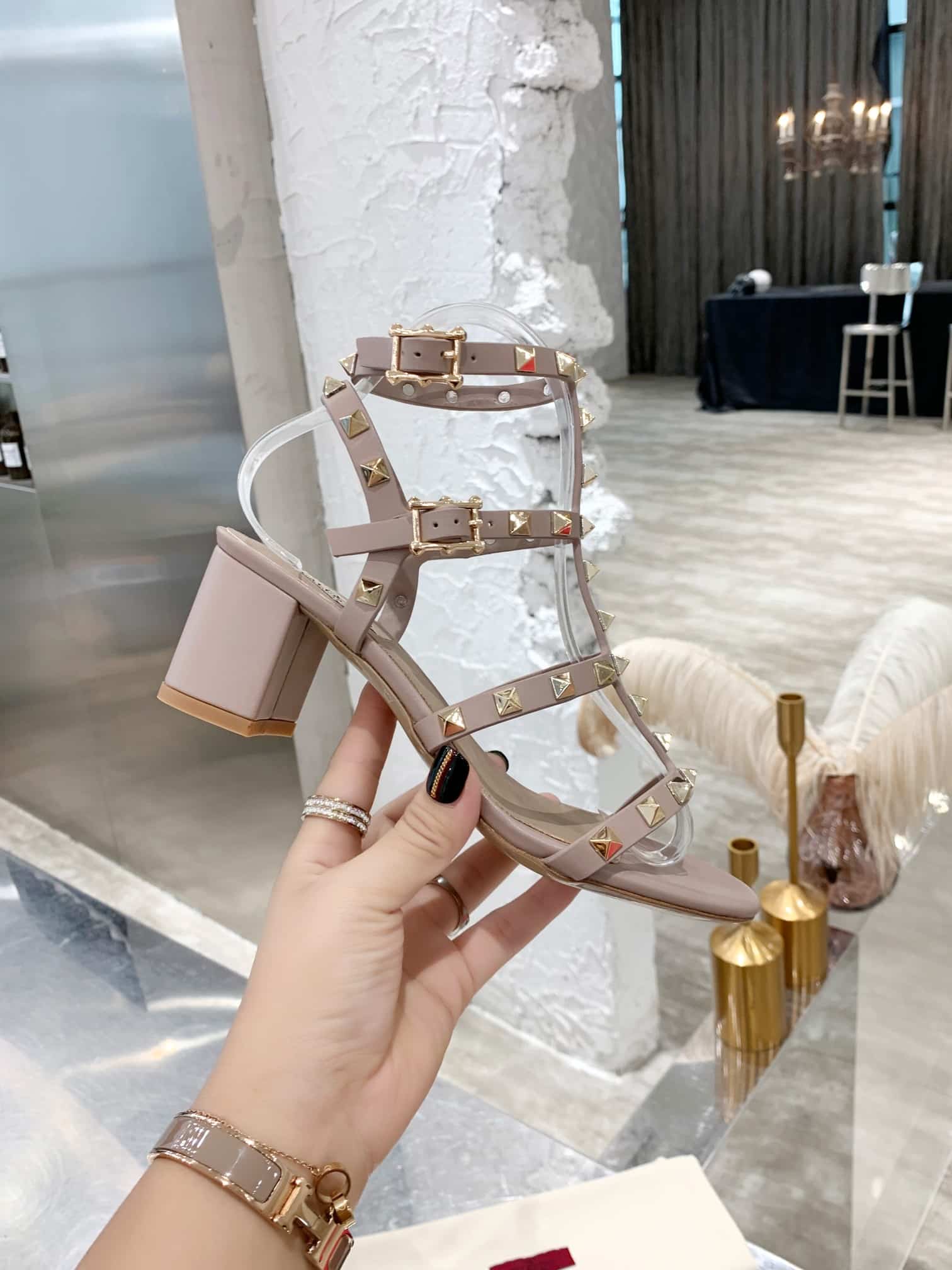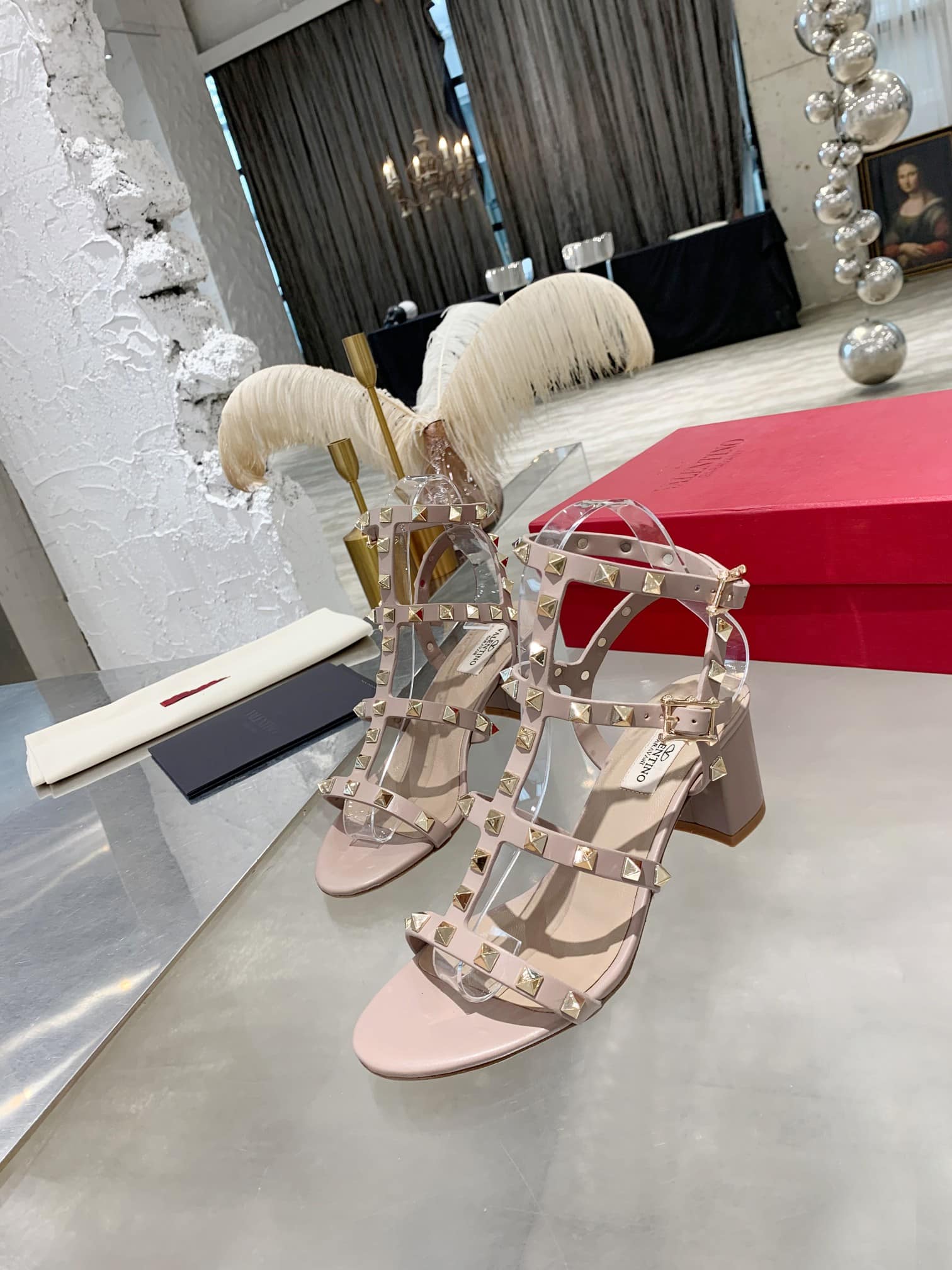 Valentino Garavani Rockstud Leather Sandals Beige