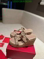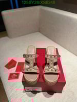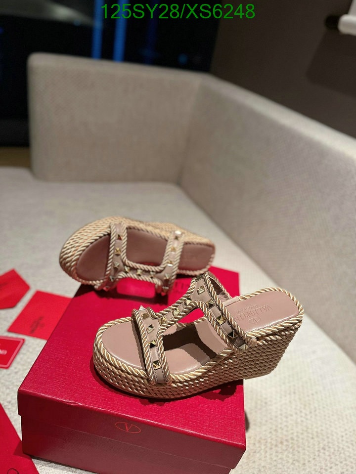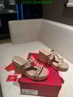 Valentino Garavani Rockstud Leather Wedge Sandals Beige