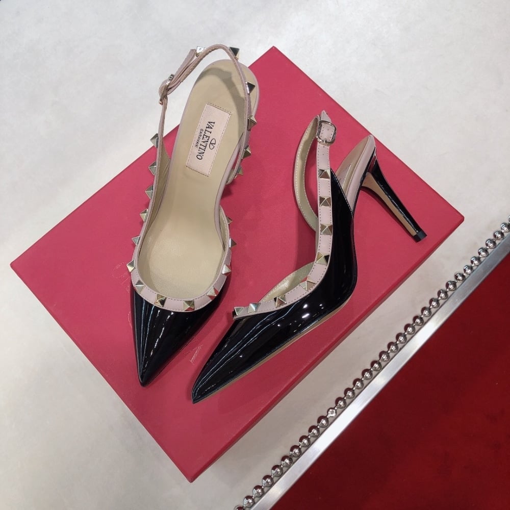 Valentino Garavani Rockstud Patent Leather Strap Pump Black