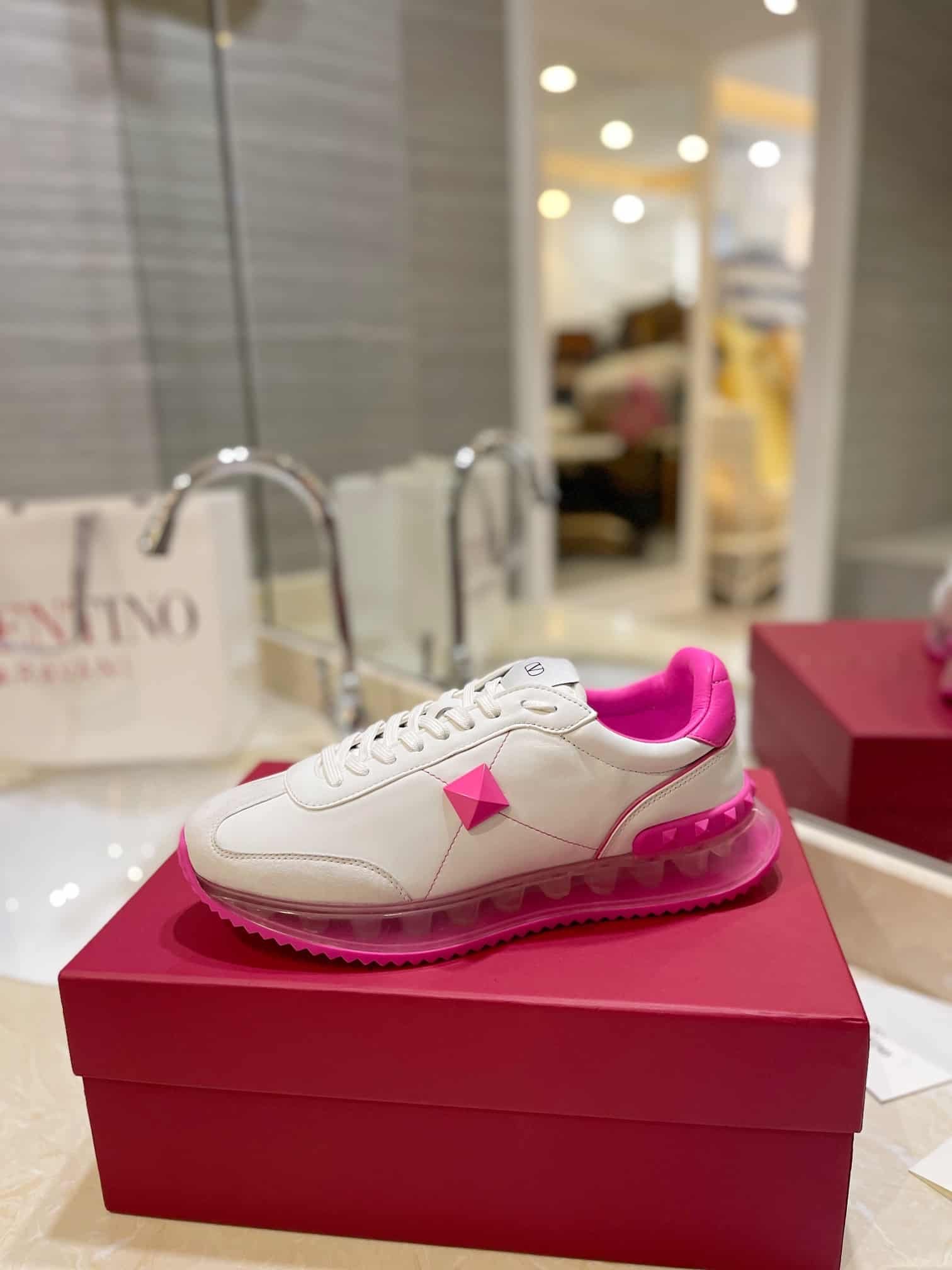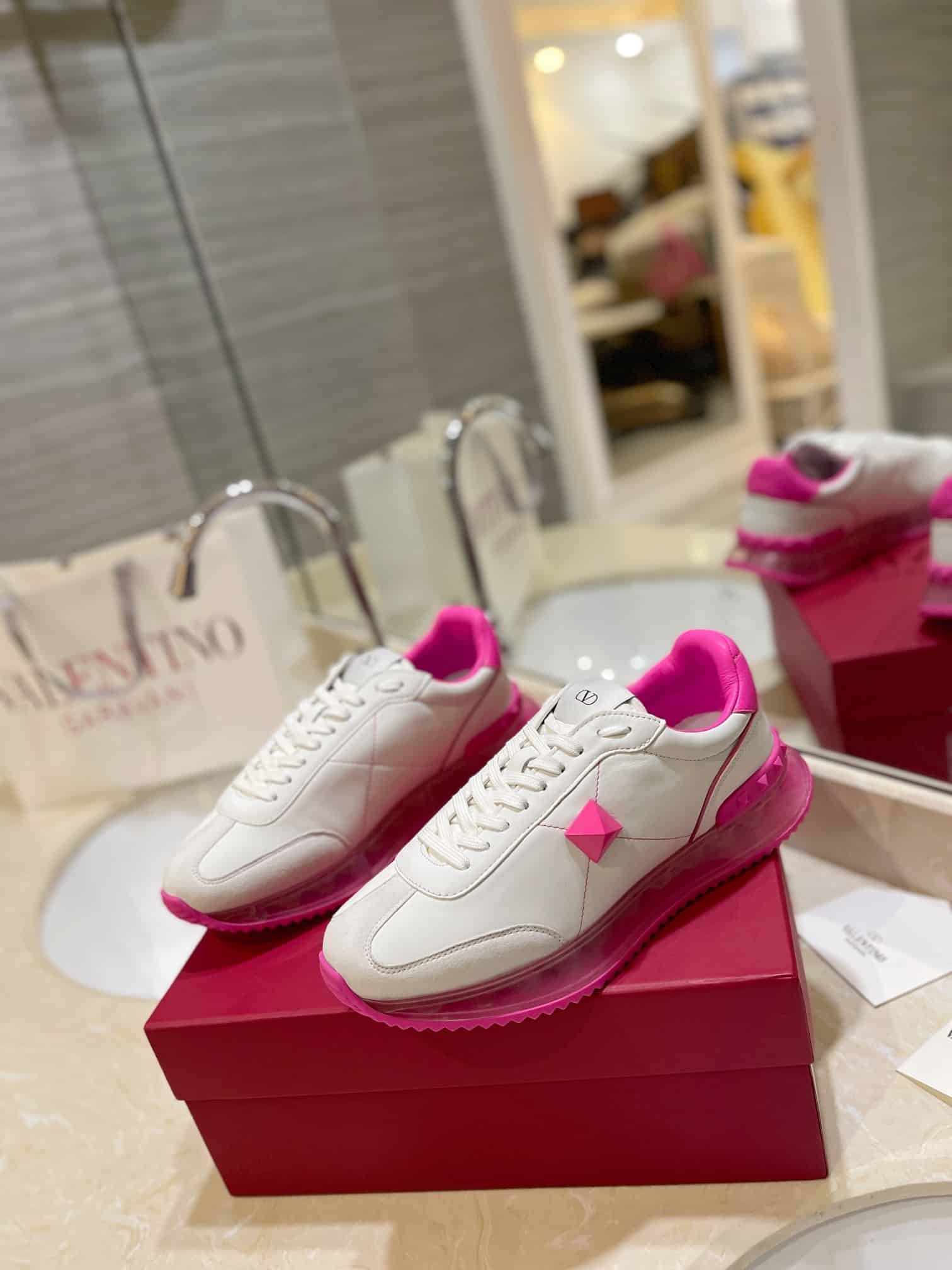 Valentino Garavani Stud Around Low Top Calfskin And Nappa Leather Sneaker Pink