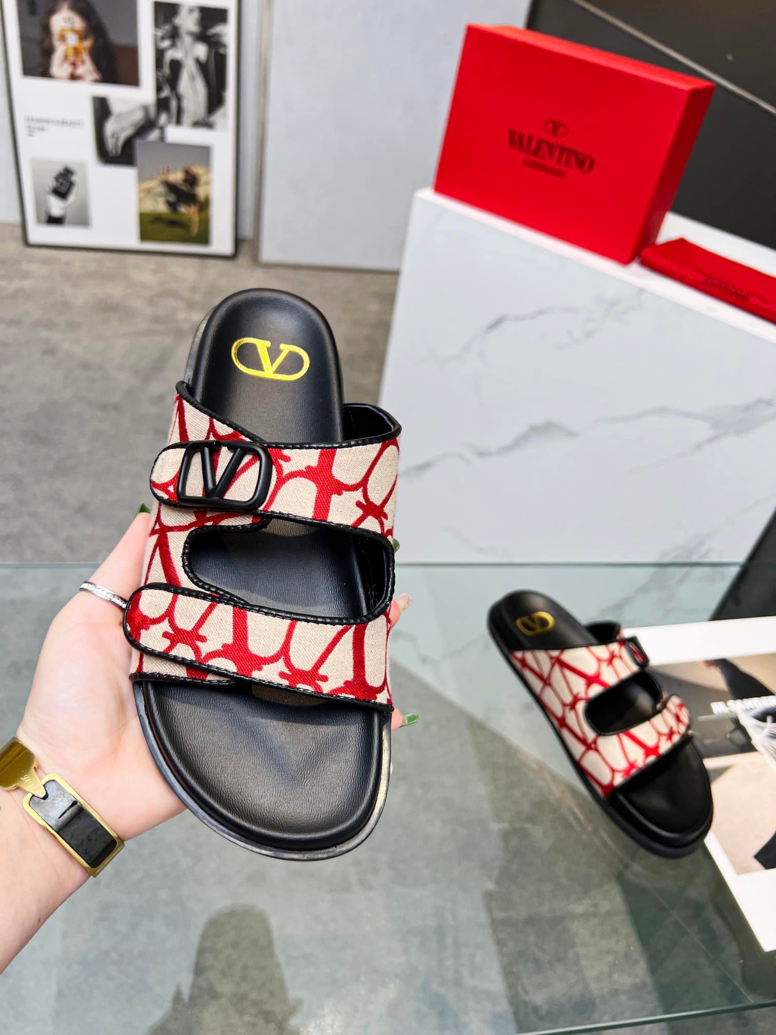 Valentino Garavani Vlogo Toile Iconographe Sandal Red