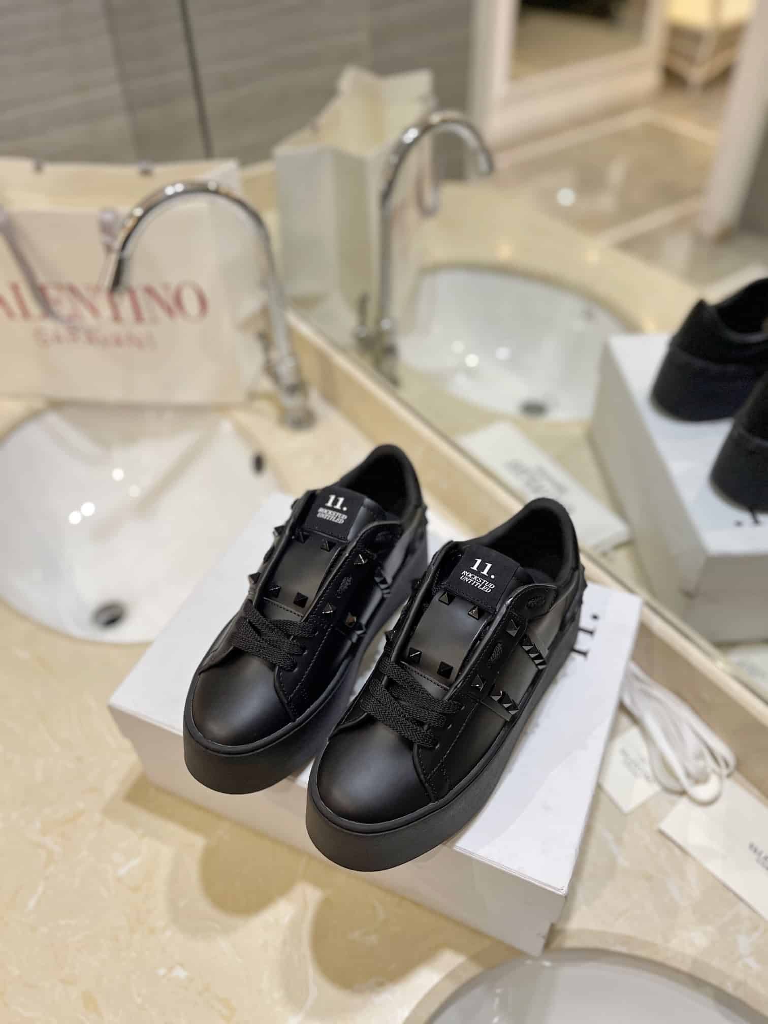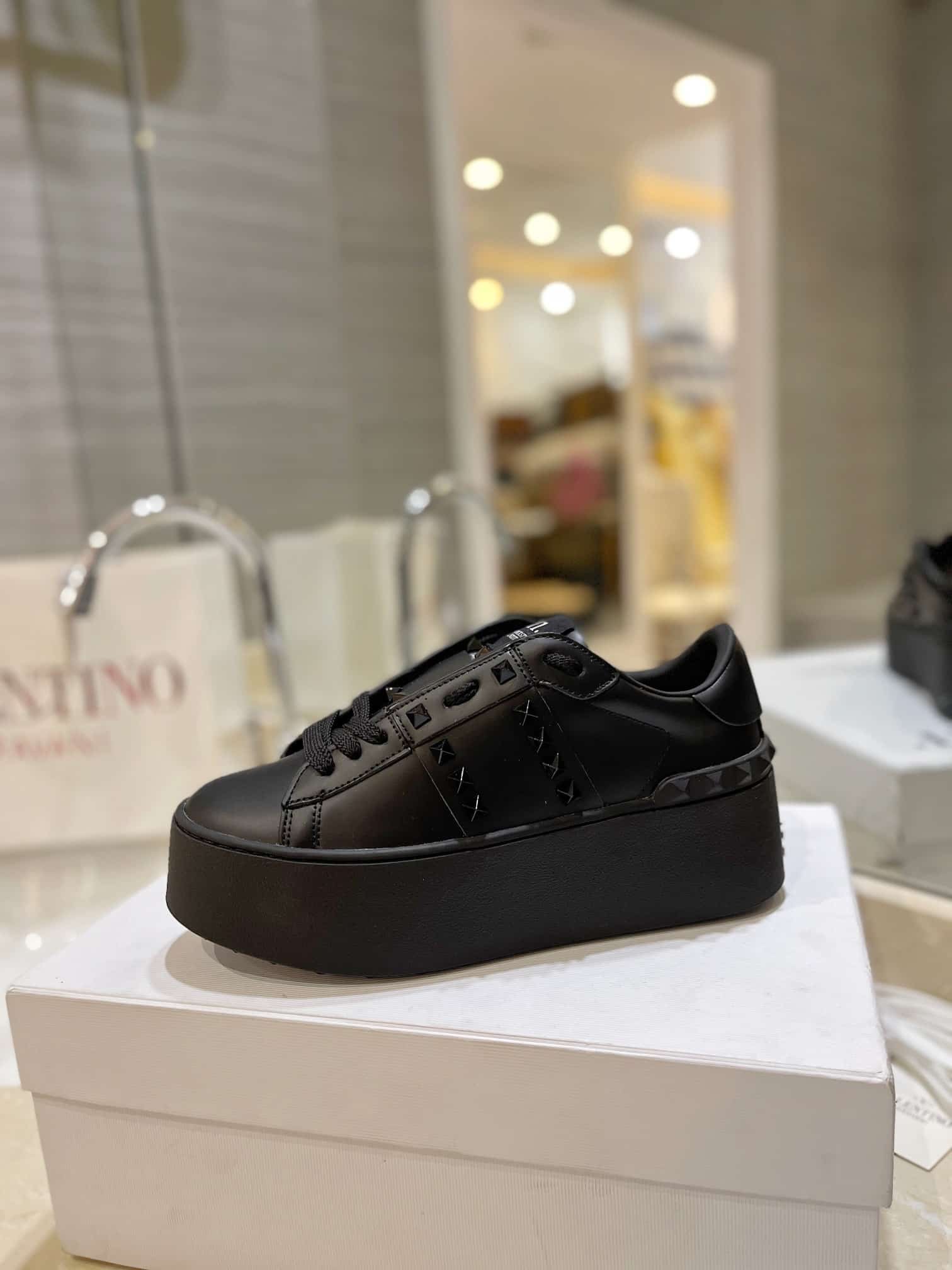 • Valentino Garavani Flatform Rockstud Untitled Sneaker In Calfskin Black