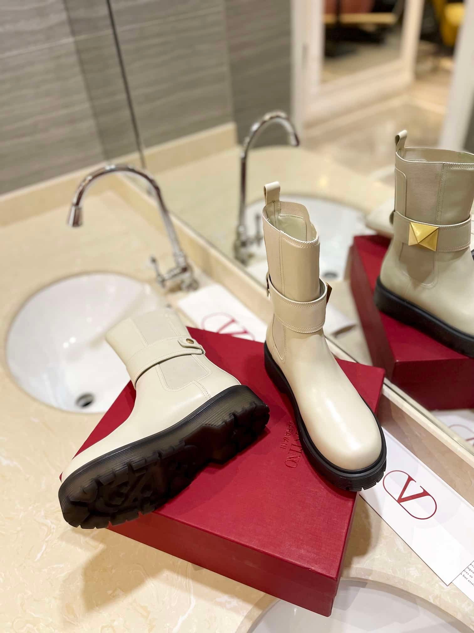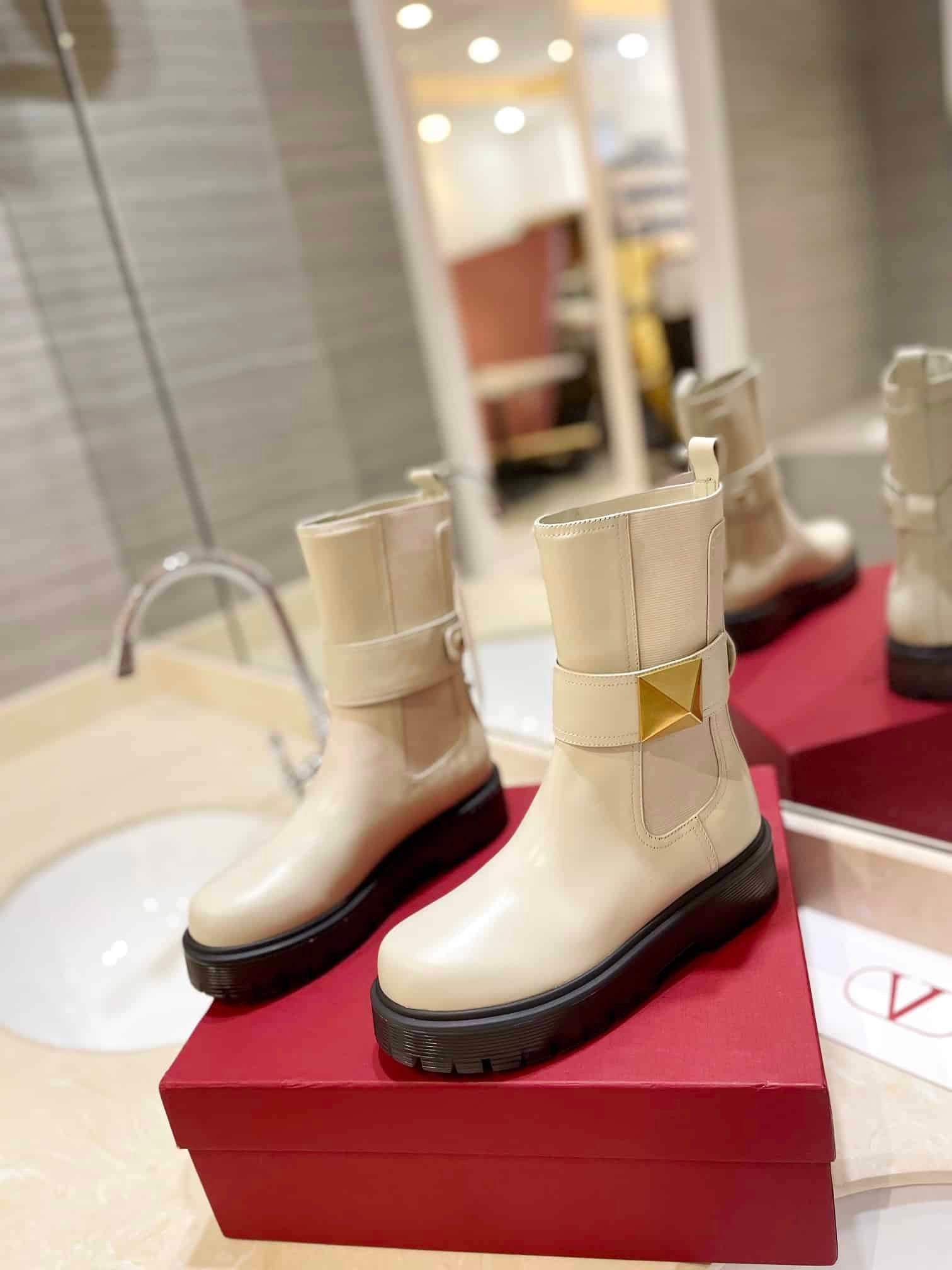 • Valentino Garavani One Stud Beatle Boot In Calfskin Light Ivory 2W2S0Fy1Kum I16