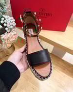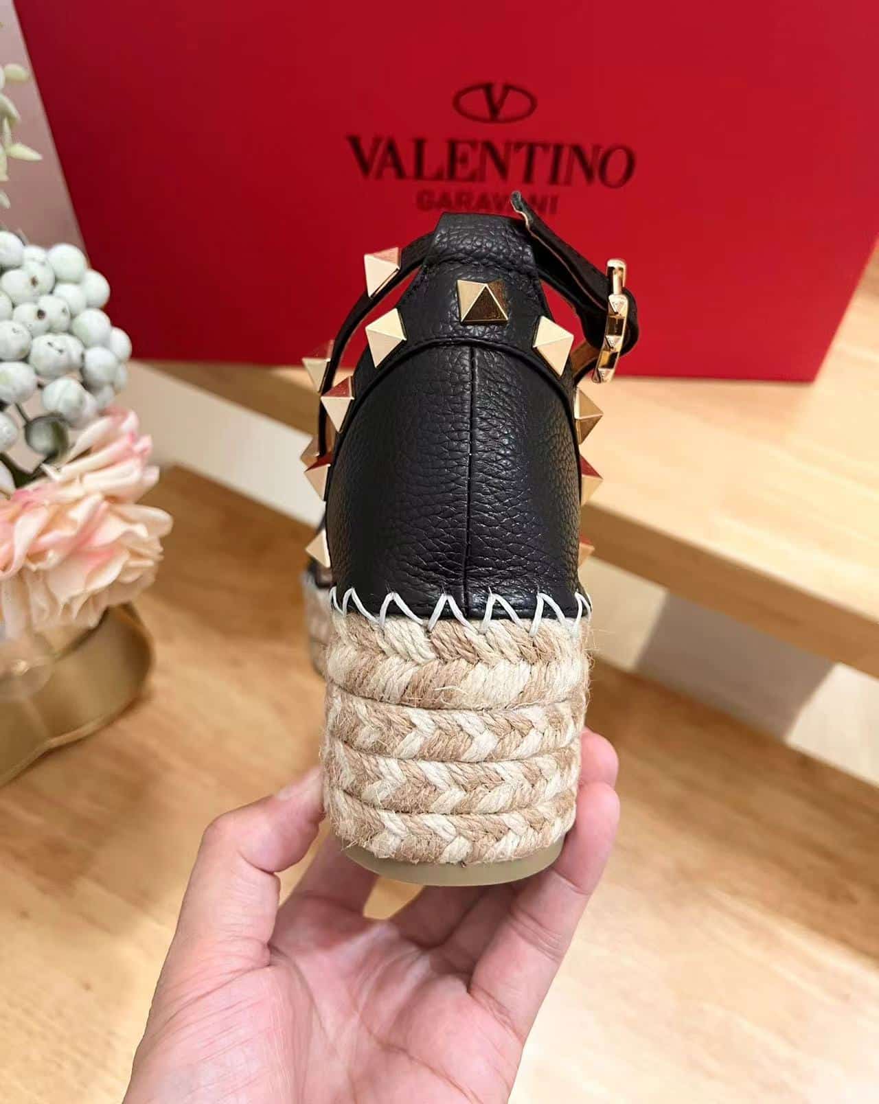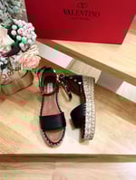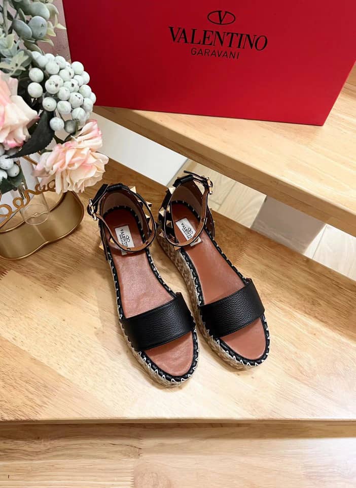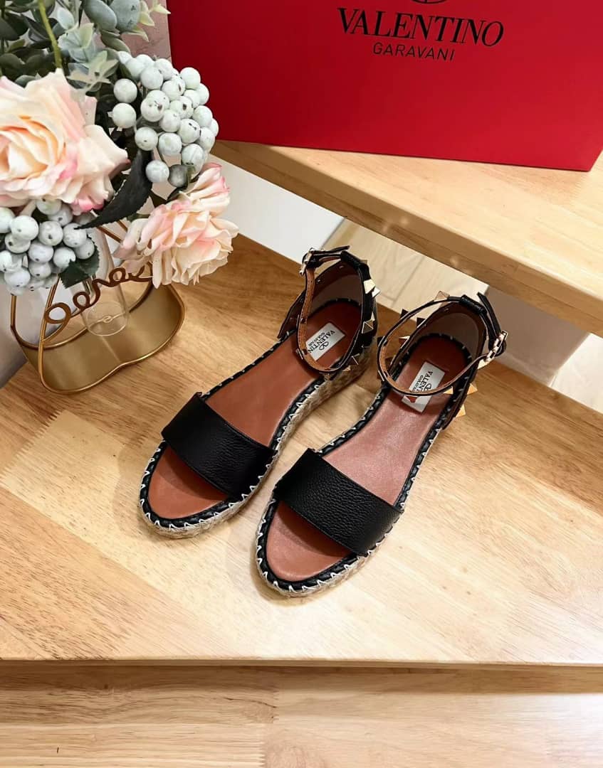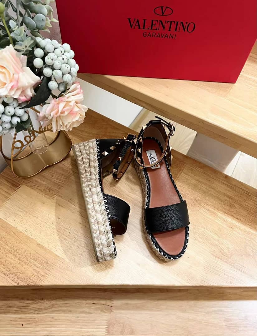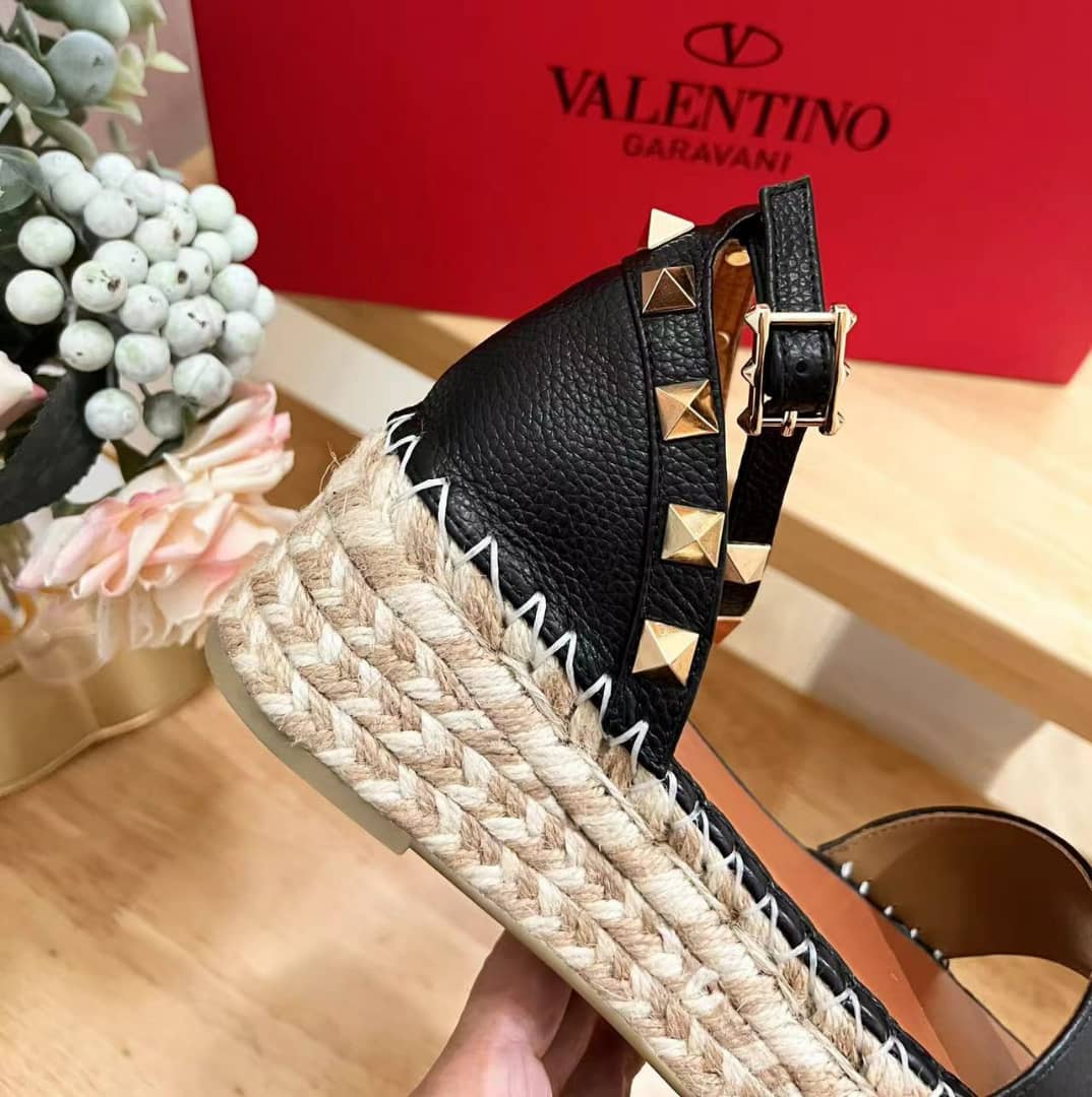 • Valentino Garavani Rockstud Calfskin Flatform Espadrille Sandals