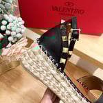 Valentino Garavani Rockstud Calfskin Flatform Espadrille Sandals