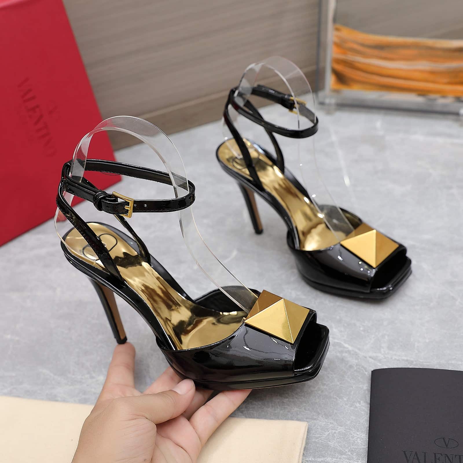 Valentino Garavani Roman Gold Stud Block Pump Black