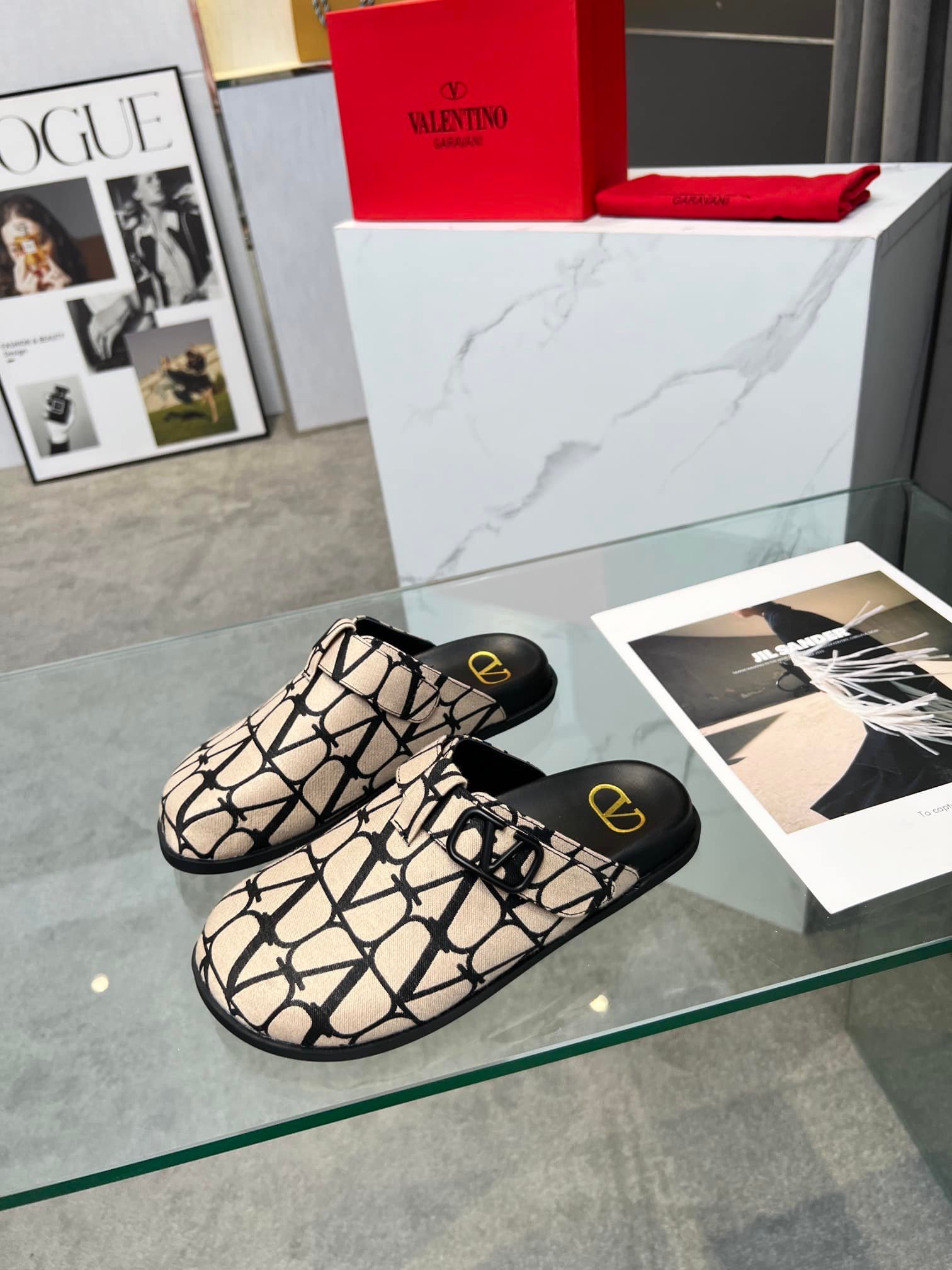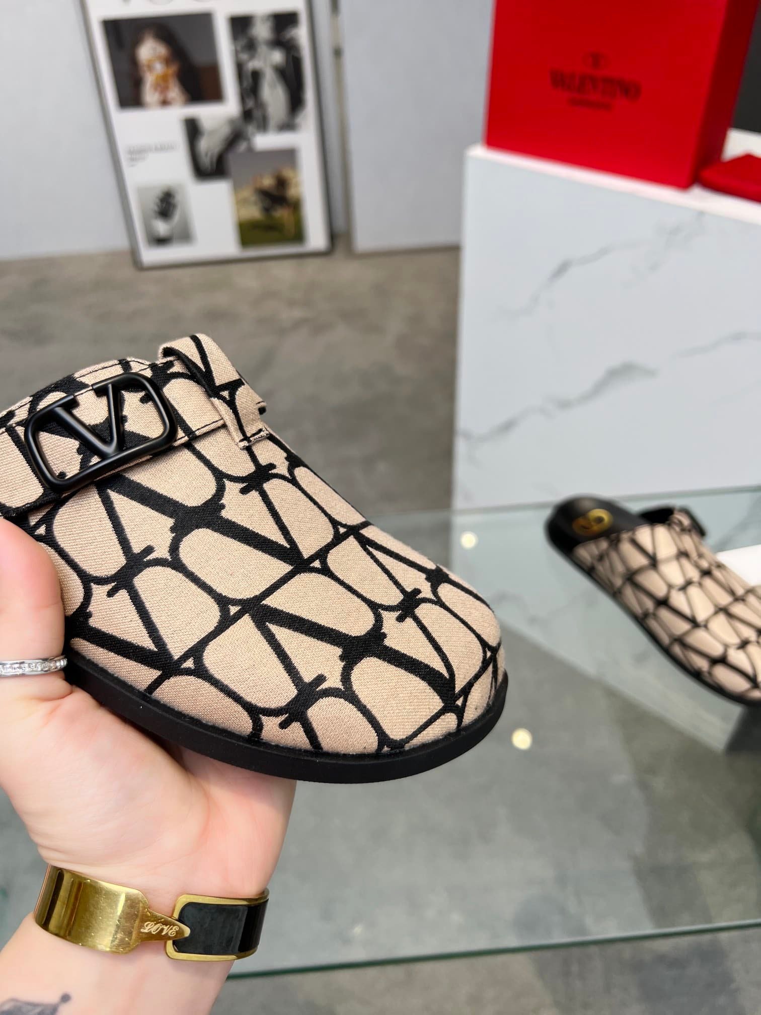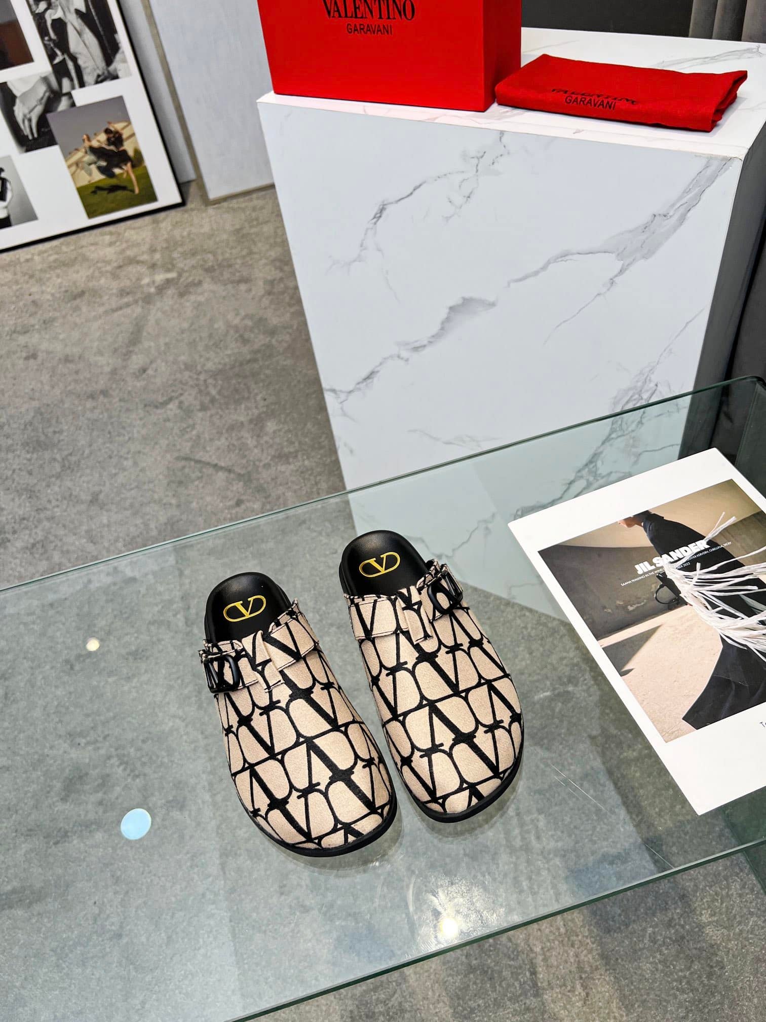 • Valentino Garavani Toile Iconographe Vlogo Clog Beige Black 3Y2S0H14Sbt