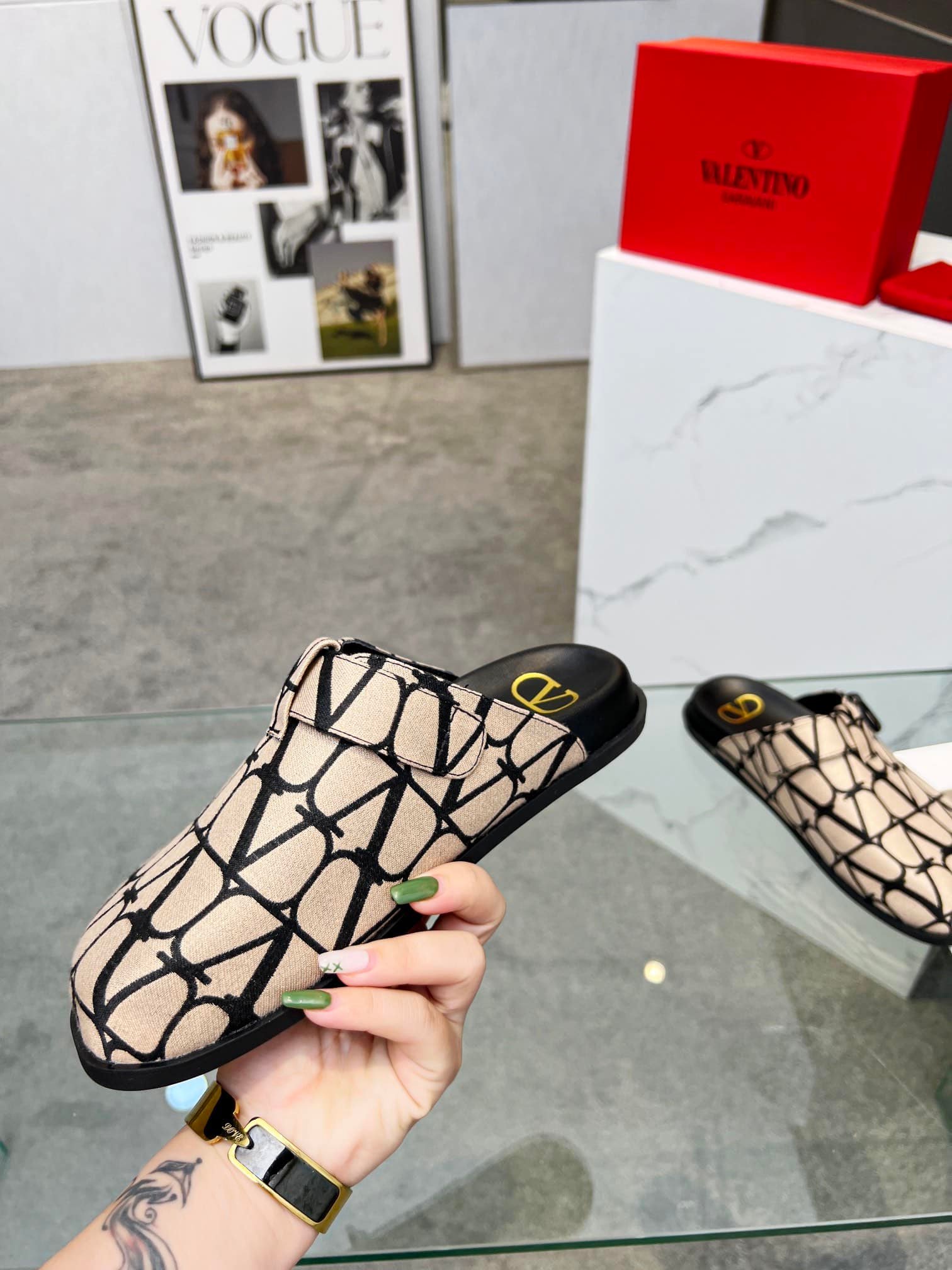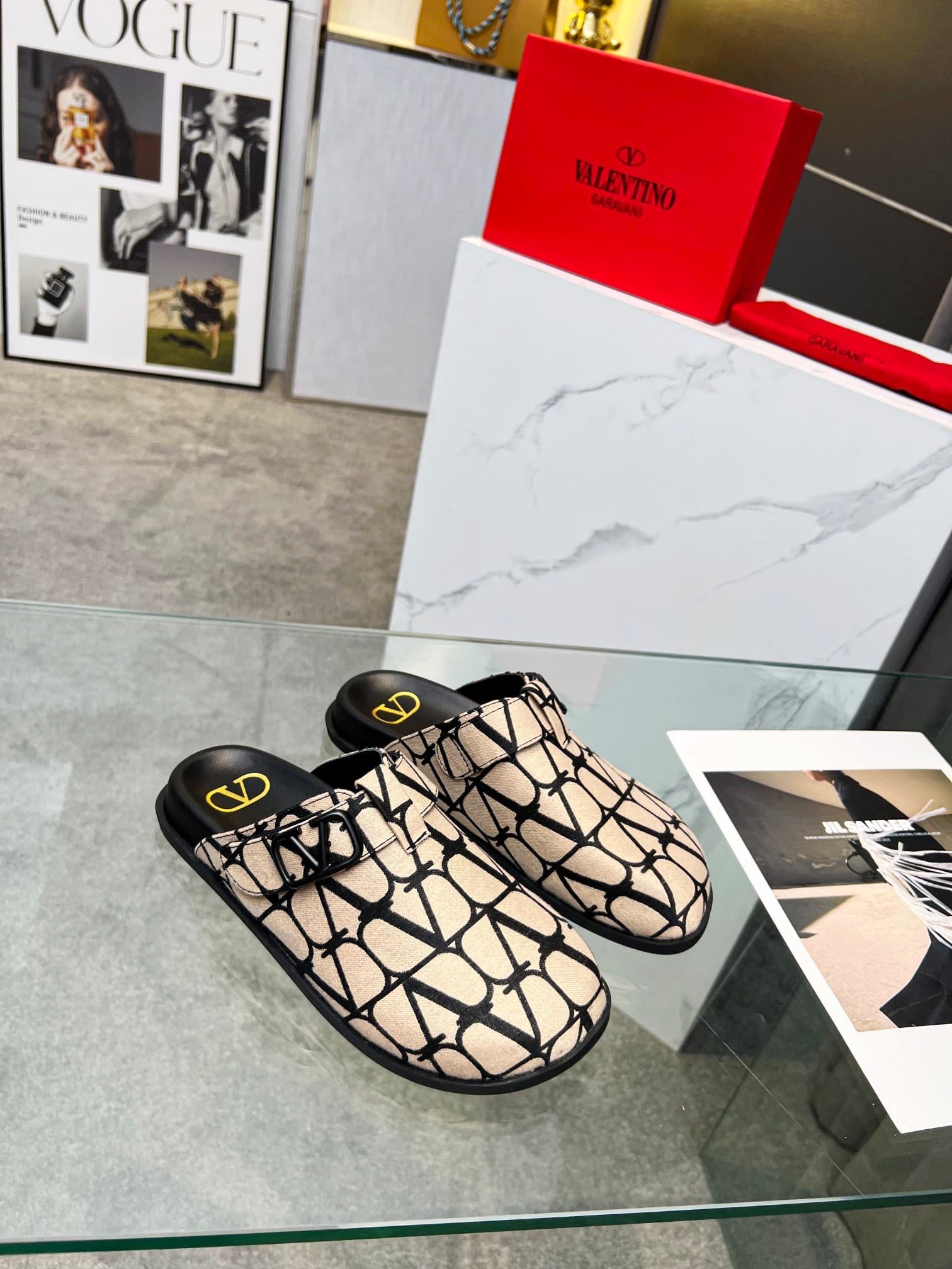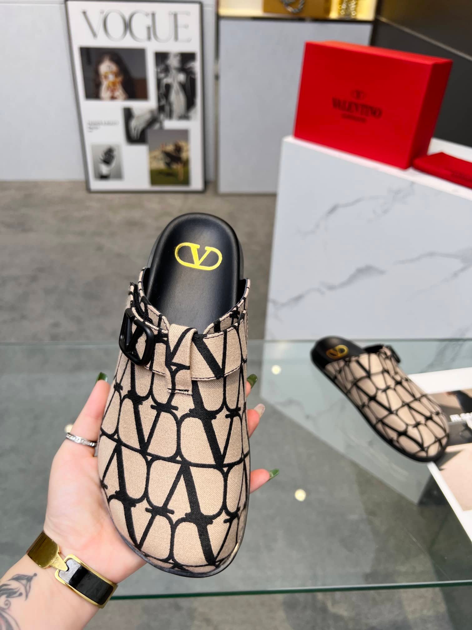 • Valentino Garavani Toile Iconographe Vlogo Clog Beige Black 3Y2S0H14Sbt