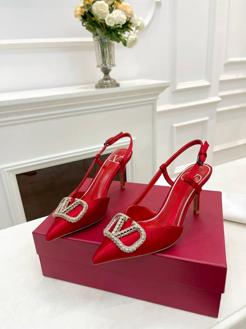 • Valentino Garavani Vlogo Signature Patent Slingback Pump Red