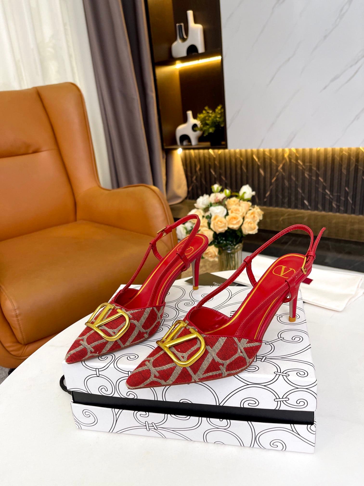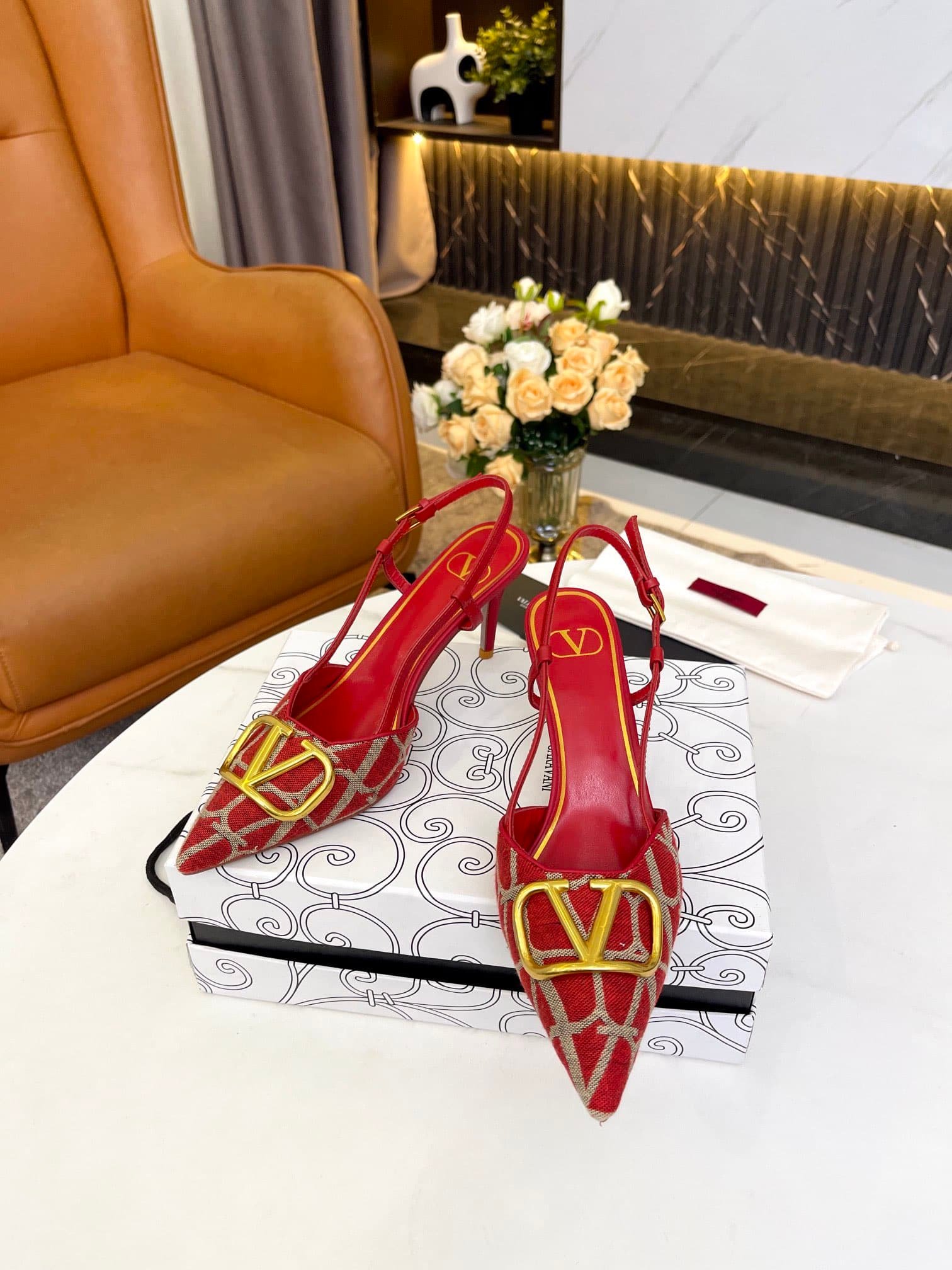 • Valentino Garavani Vlogo Signature Slingback Pump In Toile Iconographe Red