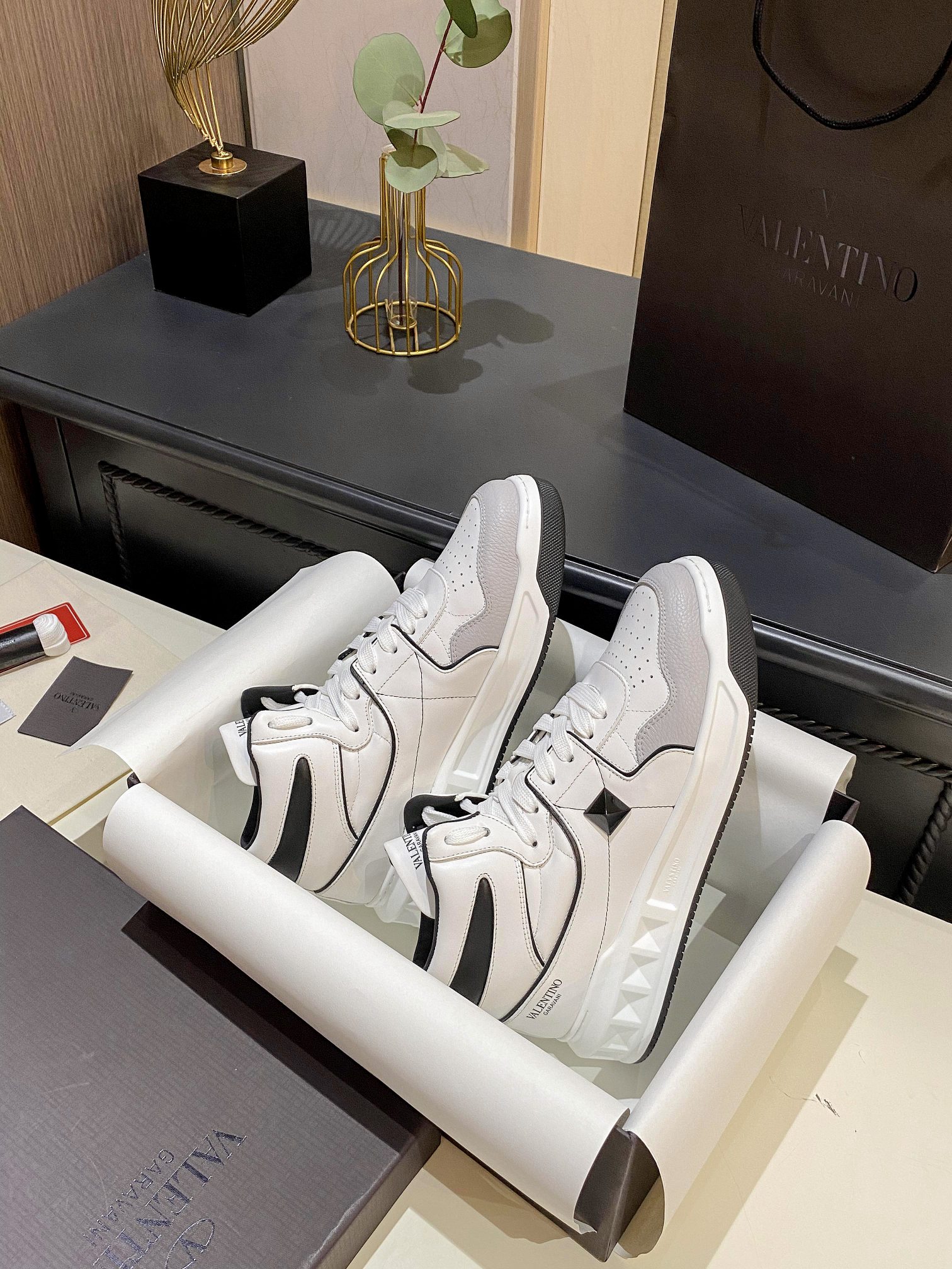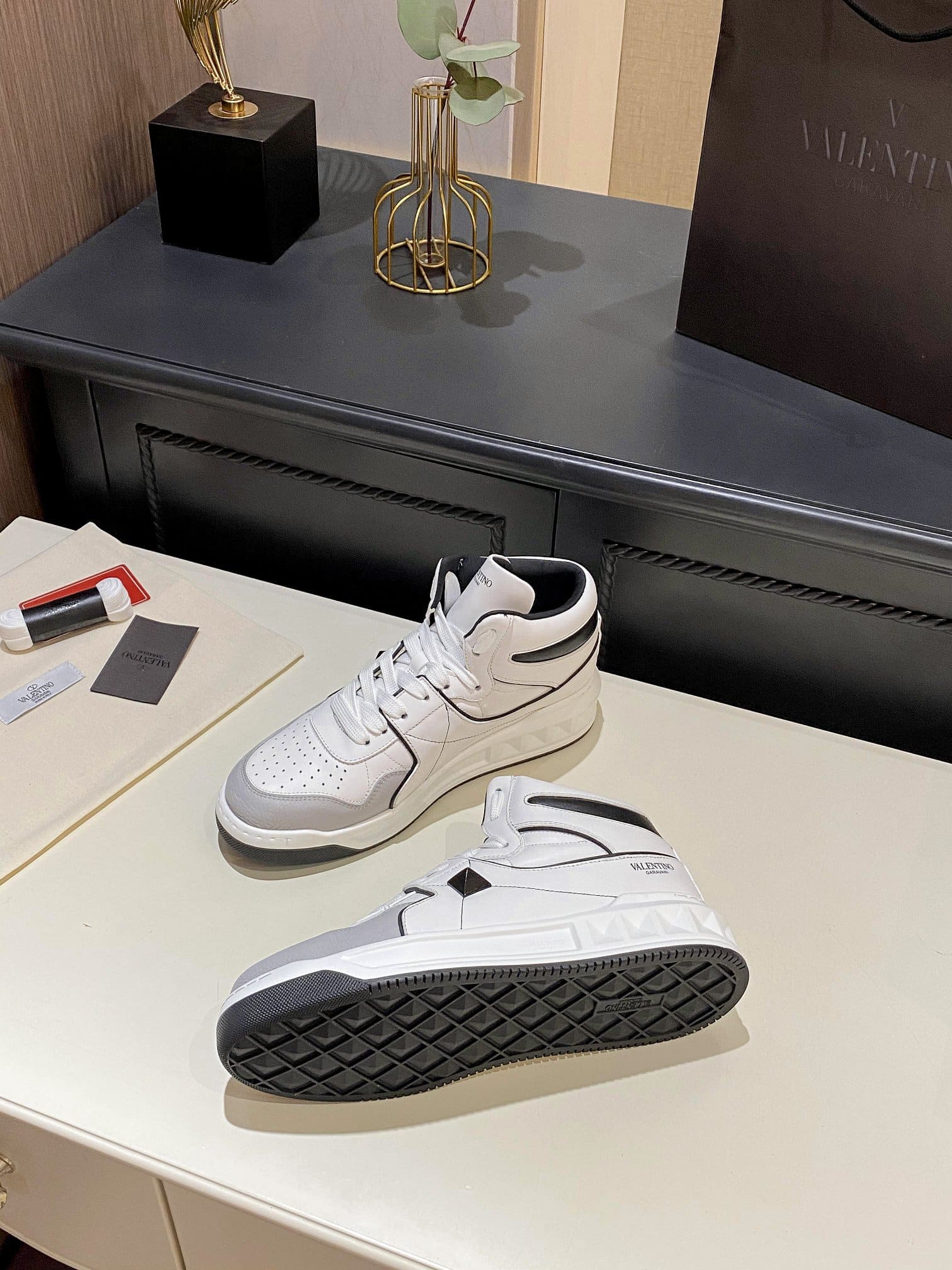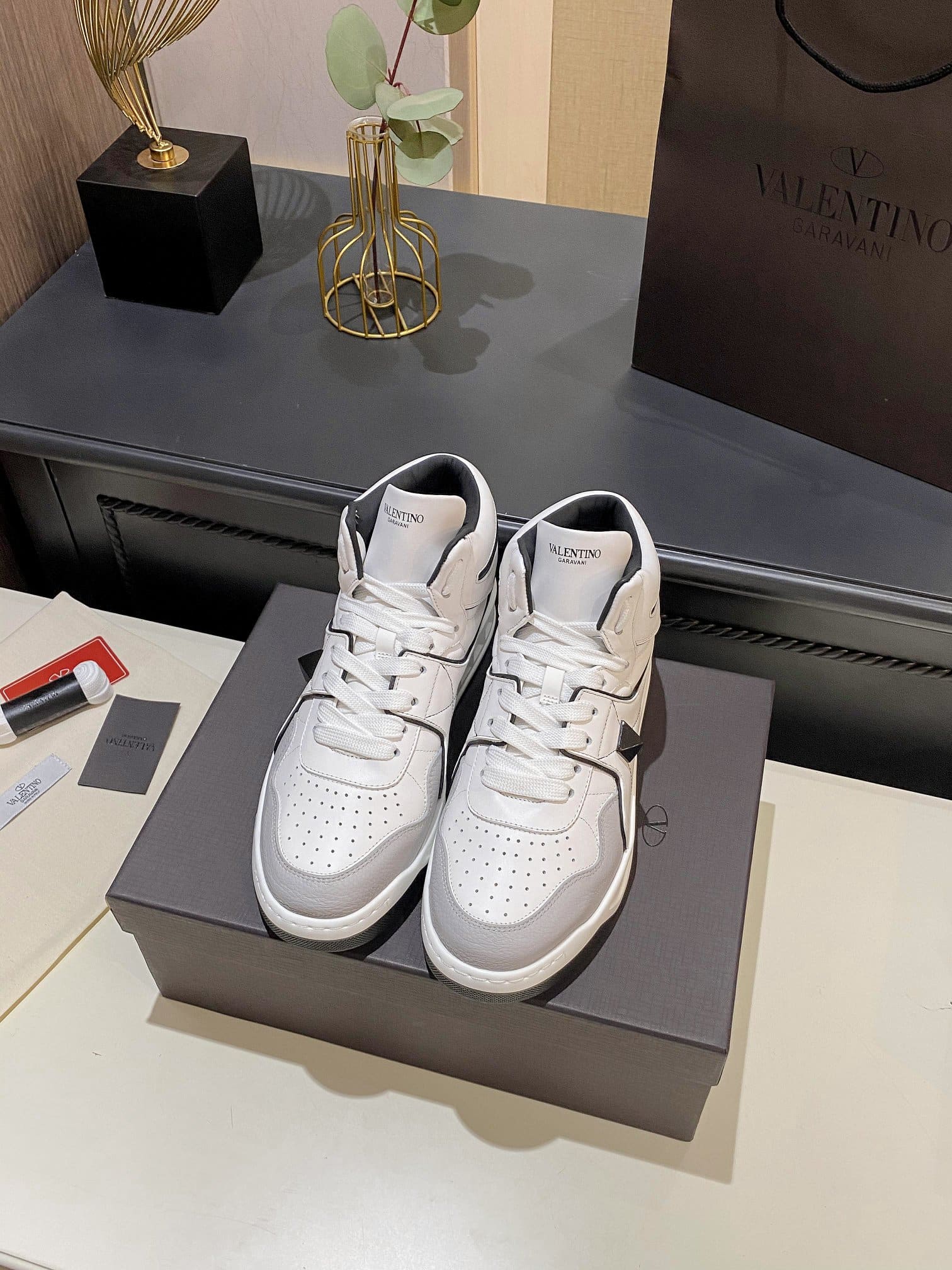 • Valentino One Stud Mid-Top Calfskin Sneaker White Ys0E63Nwn 0N2