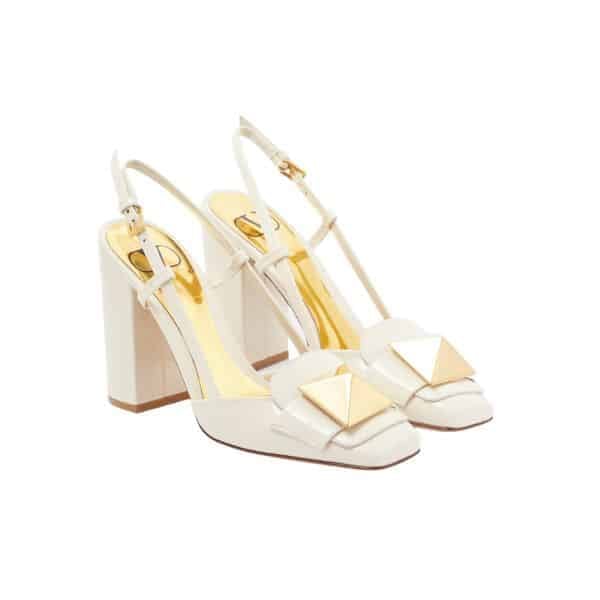 Valentino Garavani One Stud Patent Leather Slingback Pump White