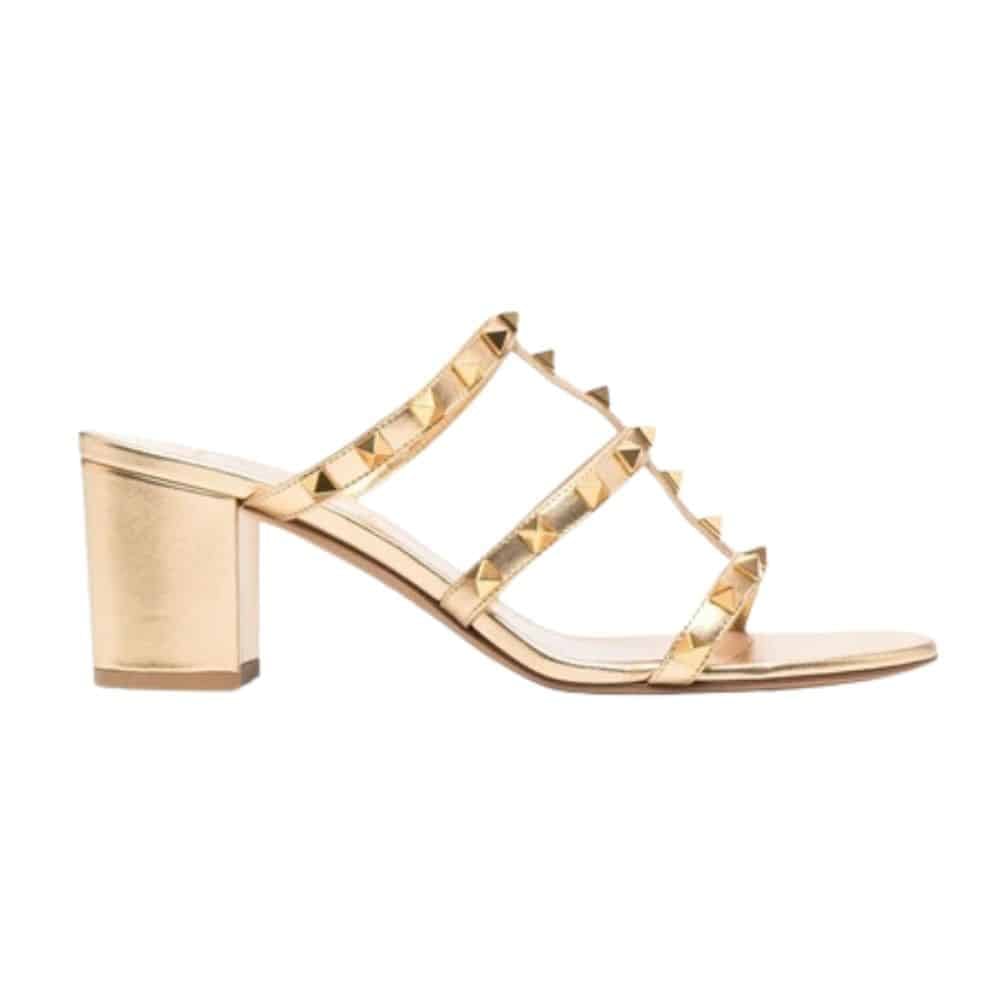 Valentino Garavani Rockstud Caged Metallic Leather Slide Sandals Gold