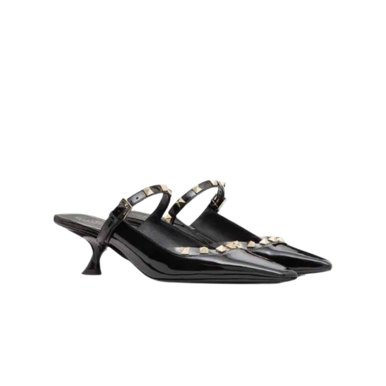 Valentino Garavani Rockstud Asymmetric Patent Leather Mules Black