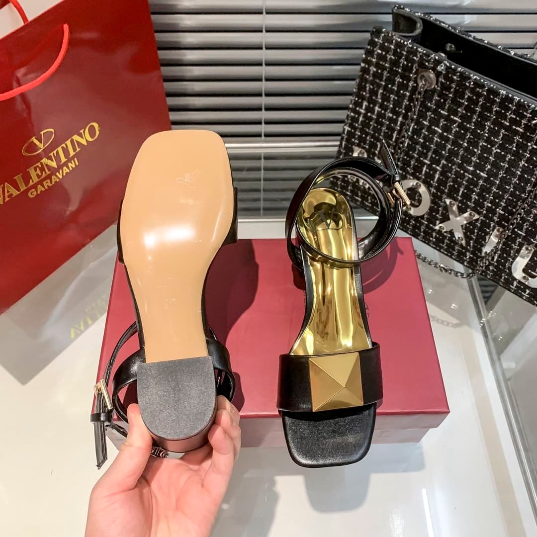 Valentino Vlogo Signature Square Toe Middle Heel Black Slide Sandal